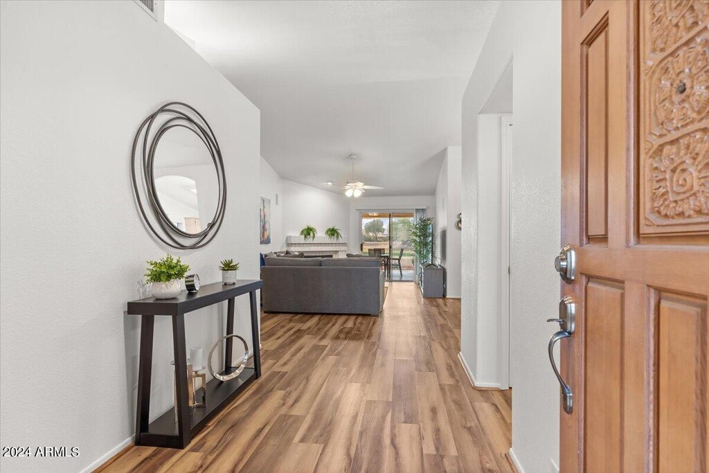 This 2 Bed/2Bath townhome truly captures the essence of a resort style residence! Snuggled in a quiet cul-de-sac overlooking the Vistas golf course #3 hole,you'll absorb fabulous views from almost everywhere you turn. Open & split floor plan w/ primary bedroom that includes a king size bed,TV & work desk along with exit to the back patio. The second bedroom features a queen size bed & two chairs that can be turned into twin beds. Well stocked kitchen w/ great light and stunning golf course views. Great room featuring fireplace,sectional couch and large smart TV. Westbrook Village offers two Rec Centers including ballrooms,pools,hobbyist studios,tennis,Pickleball,Bocce Ball fitness center,events & classes. Convenient in a beautiful,active neighborhood,come enjoy some AZ time!