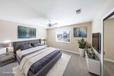 Beautifully remodeled 3-bedroom, 1-bath, single-level home located in a quiet, well-kept neighborhood. This home features a spacious kitchen and dining area with crisp, freshly painted white cabinetry, quartz countertops, and stainless-steel appliances, including a self-cleaning stove, dishwasher, refrigerator, and microwave oven. Everything has been updated from new electrical, to new plumbing. Enjoy LED lighting with dimmers in every room, laminate flooring throughout the living room, kitchen, and hallway, and porcelain tile in the bathroom and laundry areas. All bedrooms feature brand new carpet for added comfort. A convenient laundry room is located just off the kitchen. The fenced backyard offers a private patio off the living room—perfect for relaxing or entertaining. The property includes automatic sprinklers and weekly gardening service, plus a two-car attached garage. Located near the 405 and 22 freeways for easy commuting. Available mid-December.