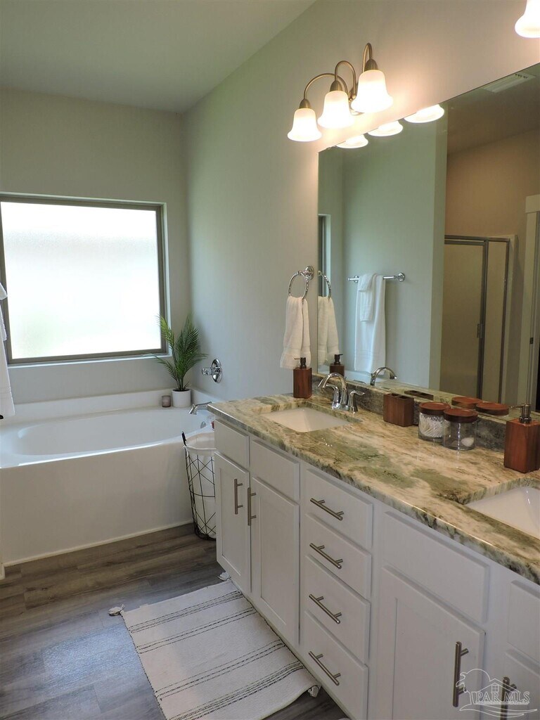 Convenient to shopping,interstate & Navy Federal complex! Almost new home. Open floor plan with 9' ceilings throughout. Wood-look vinyl plank flooring in main living areas with carpet in bedrooms. Living room with ceiling fan,boxed ceiling & recessed lights. Living/dining combination. Fully equipped kitchen with granite countertops,island & pantry. Split master suite with boxed ceiling,ceiling fan,recessed lighting,double vanity,garden tub,separate shower & walk in closet -- closet has direct access to laundry room. Partially fenced backyard with covered porch. Dogs considered with owner approval - no cats. No smokers. Discounted security deposit for active duty military - call for details.