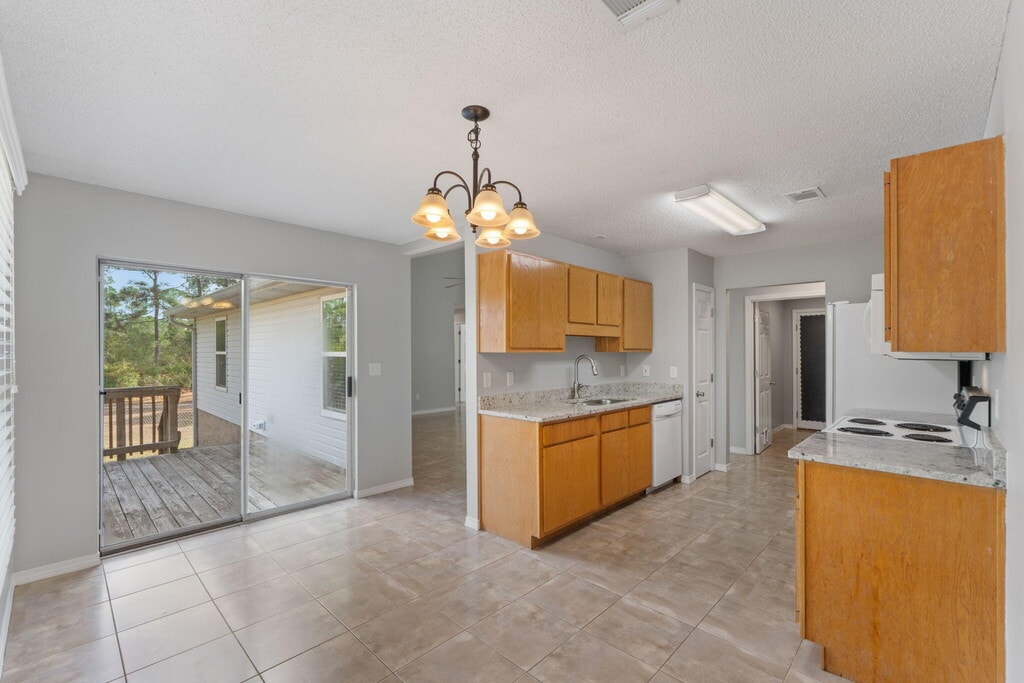 If you are looking for some wide-open spaces, you've found it! This acre property on the back of a quiet cul-de-sac has very nicely updated 4-bedrooms. There is carpet in the bedrooms and beautiful tile in all the common areas. The kitchen features granite countertops and a lovely eat-in kitchen nook overlooking the spacious backyard. The 20x20 two car garage features epoxy flooring. The Master bedroom is large and the ensuite has dual sinks, an oversized linen closet, a soaking tub, and a walk-in closet. This home is located conveniently near Navarre High School and NYSA Sports Plex between local military installations, shopping/dining amenities, and beautiful, white-sand beaches.