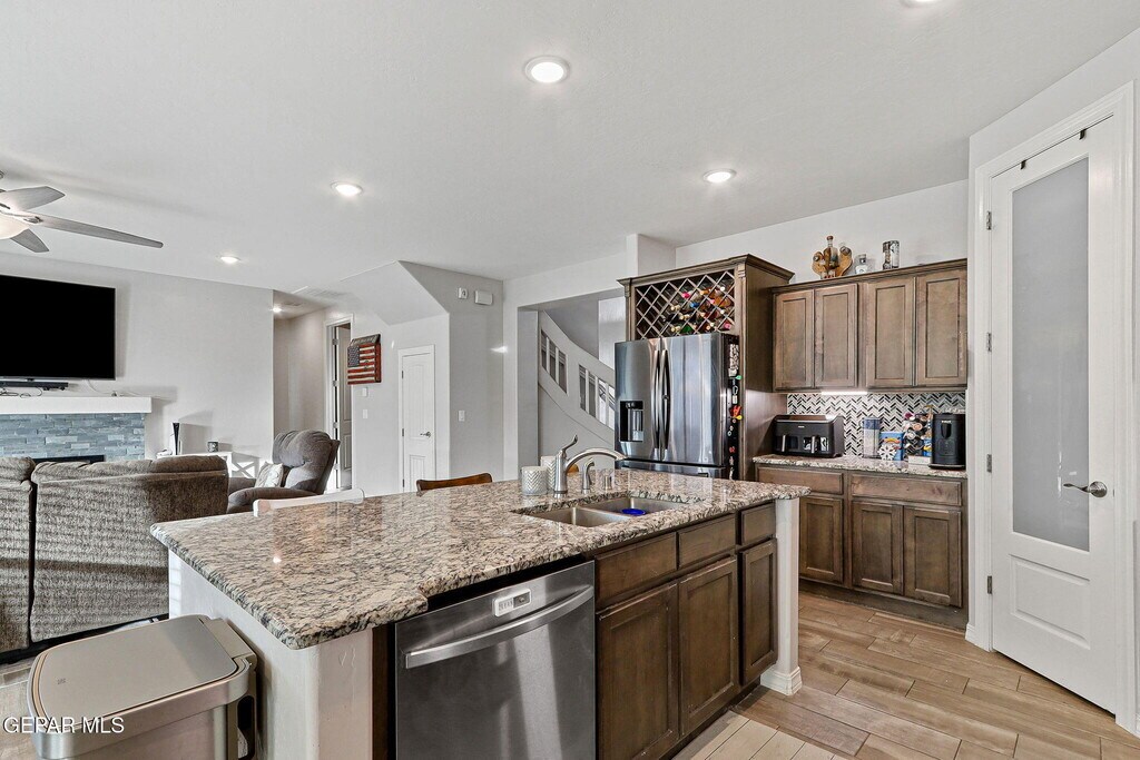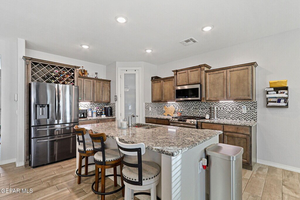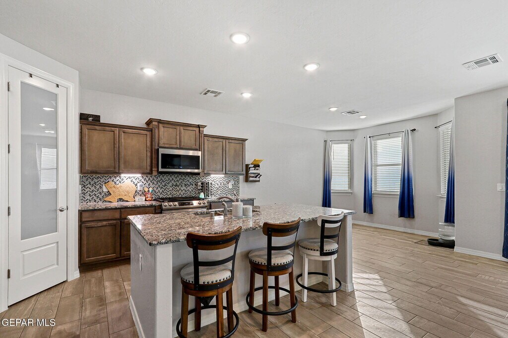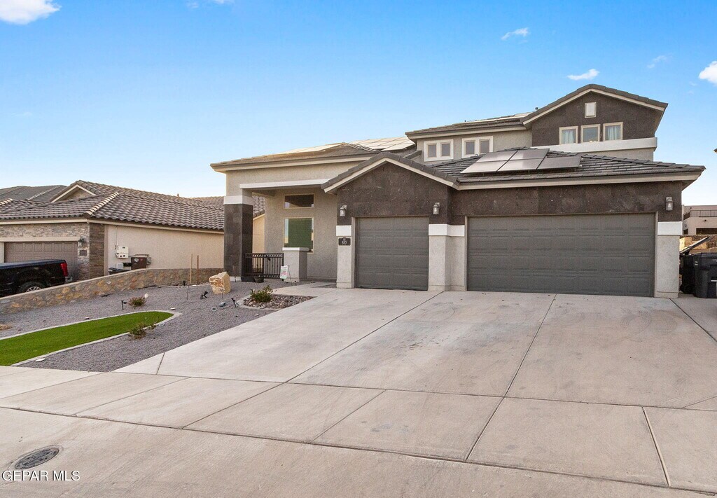 Welcome to an exceptional opportunity to lease in the prestigious Americas Estates on El Paso's coveted East Side. Inside,an open-concept living area bathed in natural light features a cozy fireplace and flows seamlessly into a chef's kitchen,creating the perfect environment for entertaining. The primary suite,conveniently located on the first floor,offers a peaceful private retreat. Step outside to your personal oasis—a meticulously landscaped backyard with a sparkling pool,ideal for relaxation and hosting gatherings. Embrace significant energy savings with 44 owned solar panels,and enjoy the convenience of a spacious 3-car garage equipped with a Tesla EV charger. Perfectly situated,you're just minutes from top schools,shopping,dining,and entertainment,with easy access to Loop 375,I-10,and Fort Bliss. This home truly combines elegant living with practical,modern perks. *All residents are enrolled in the Resident Benefits Kit (RBK) which includes liability insurance,credit building to help