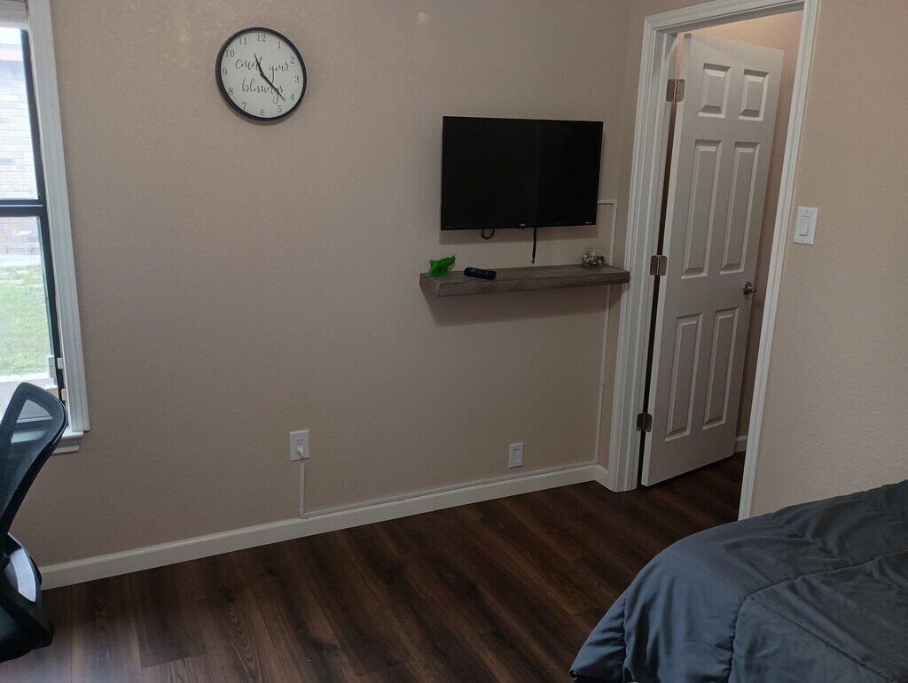 Room for rent: Property is located in a peaceful neighborhood five minutes away from Randolph Air Force Base. House is equipped with all you need to have a pleaseant stay. In addition it has a complete weight room, patio with furniture and a BBQ grill. - Streaming is available using your own accounts. - Parking for 2 vehicles, cameras in front poiting to walkway and driveway. *Cats and small dogs only, 30 lbs max **Bedroom furnishing not removable Note: Do not visit this property without first contacting us to schedule a tour at the number below.
