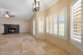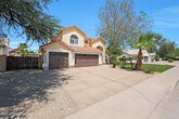 Beautiful 4 BR / 3 BA,~2,920 sq ft,11,407 sq ft lot,3-car garage,private pool,RV gate,vaulted ceilings,two indoor fireplaces,and an outdoor fireplace with grill. No HOA! Move-in ready with the following recent updates: Resort-style backyard (new turf & stone pavers),Epoxy garage flooring,restored Travertine tile,KitchenAid microwave/oven combo + refrigerator,refinished cabinetry,new paint/finishes. New dishwasher & in-unit washer/dryer,Pool child-safety fence. Newer main A/C system. Newer water heater. Eco-friendly turf reduces irrigation costs and water bills. Pool service and landscaping included in the rent. Outdoor entertaining (fireplace,grill,pavers). The master bedroom has an extended walk-in closet that can be used as a dressing room or nursery. No cats