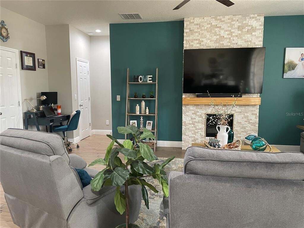 LISTING AGENT IS OWNER. Rental home features an open floor plan with ceiling fans,coastal lighting,an inviting family room with an electrical fireplace,a well-equipped kitchen with modern appliances and ample cabinet space. The bedrooms each have a small walking closet,and the master bedroom has a large walking closet and full bathroom with a his and her sink and tile shower. Outside,there's a 2 cars garage,screened lanai and a fenced backyard which features all over artificial grass,outdoor kitchen and grill,and a gas fire pit,ideal for all kinds of gatherings. Property is vacant and unfurnished,move-in ready. MLS# L4958780