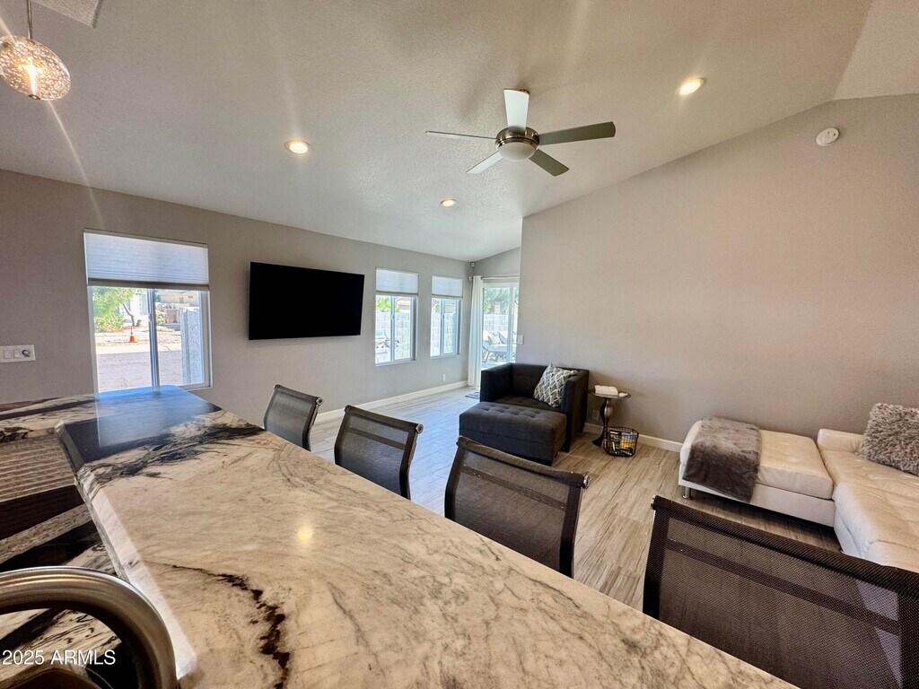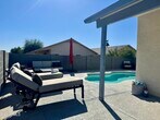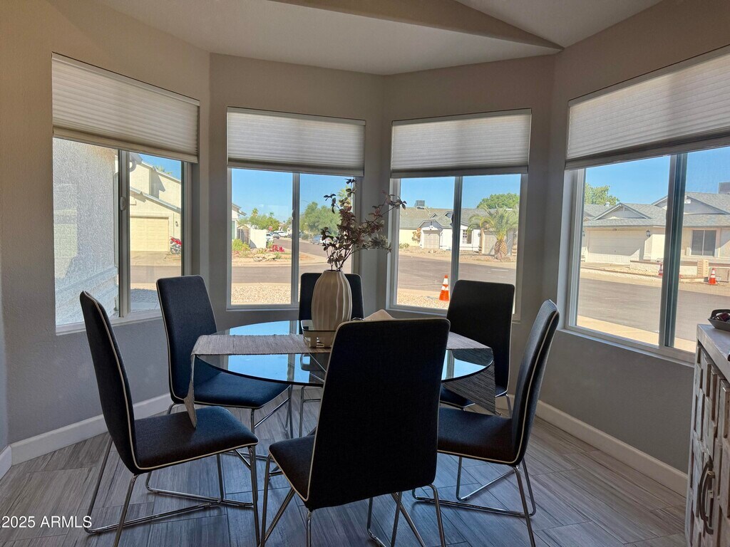 Beautifully maintained single-level home in a prime Peoria location! This 3 bed,2 bath rental offers an open floor plan w soaring ceilings & plenty of natural light. The spacious great room flows seamlessly into the eat-in kitchen,featuring newer cabinetry & breakfast bar seating. The primary suite includes a walk-in closet & private ensuite bath. Two additional bedrooms provide flexibility for guests,work-from-home space,or hobbies. Neutral paint and tile/laminate flooring throughout make for easy care & a modern feel. Step outside to a private,low-maintenance backyardperfect for relaxing or entertaining. The sparkling pool can be heated making use of the refreshing pool year round! Additional features include an attached 2-car garage,indoor laundry & all appliances included.