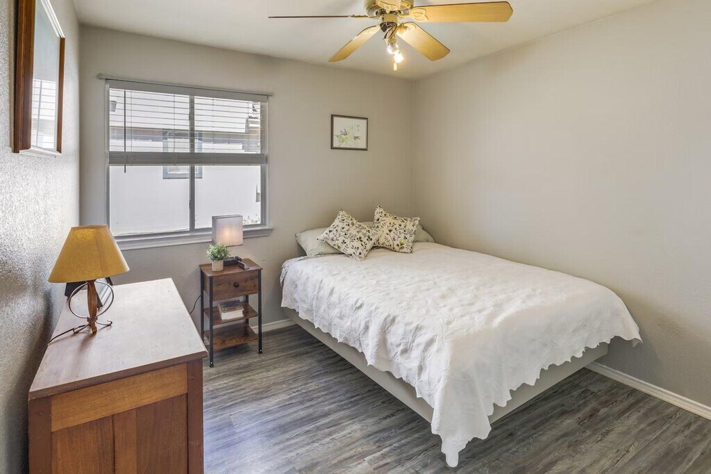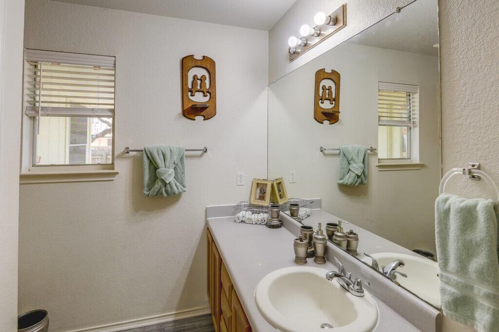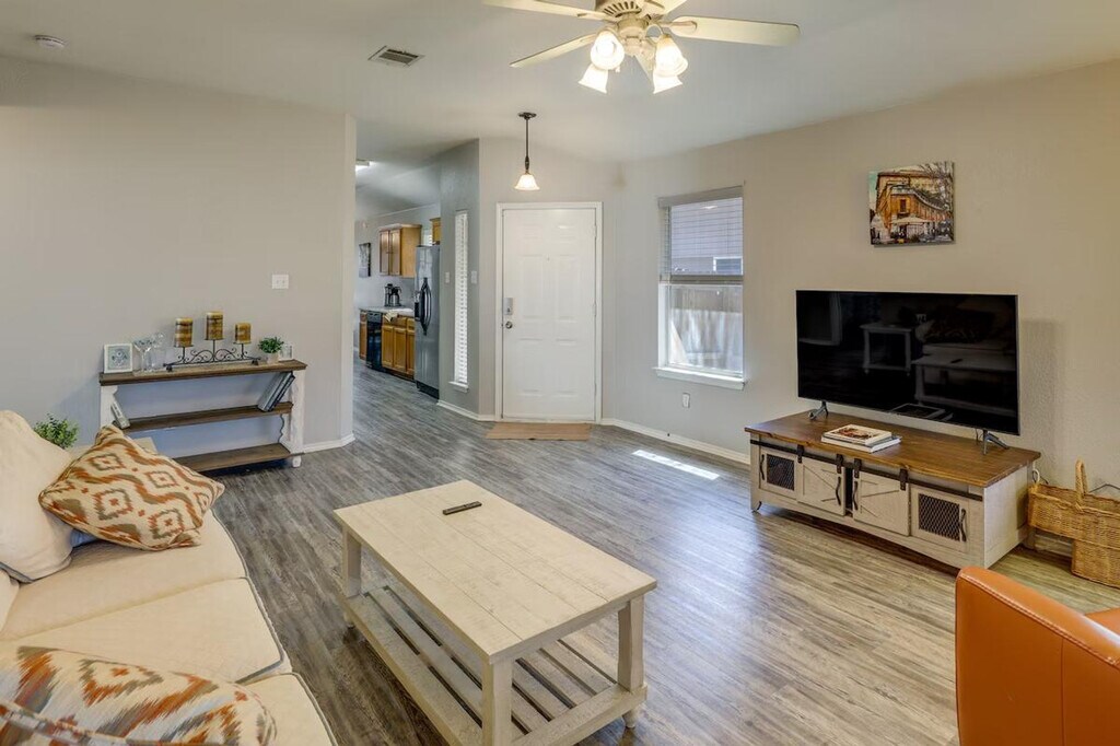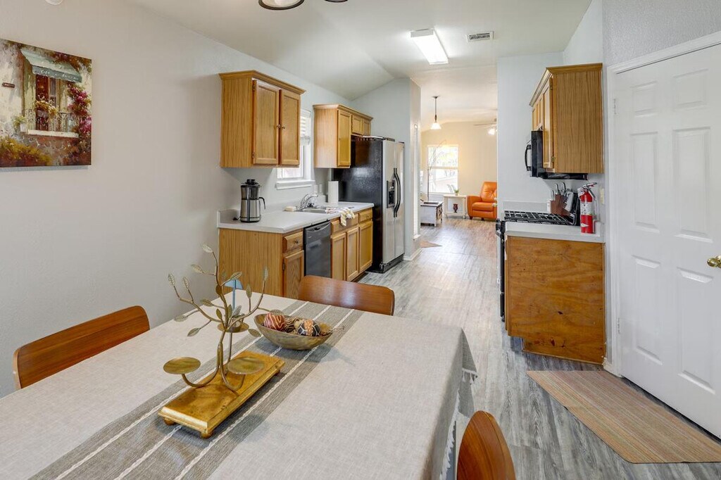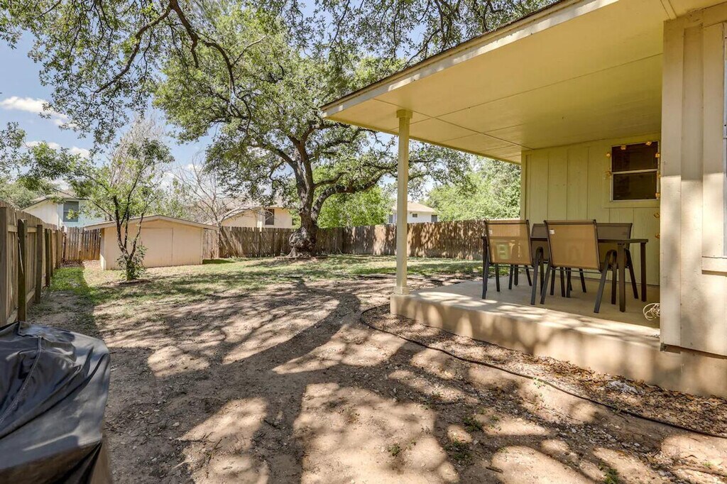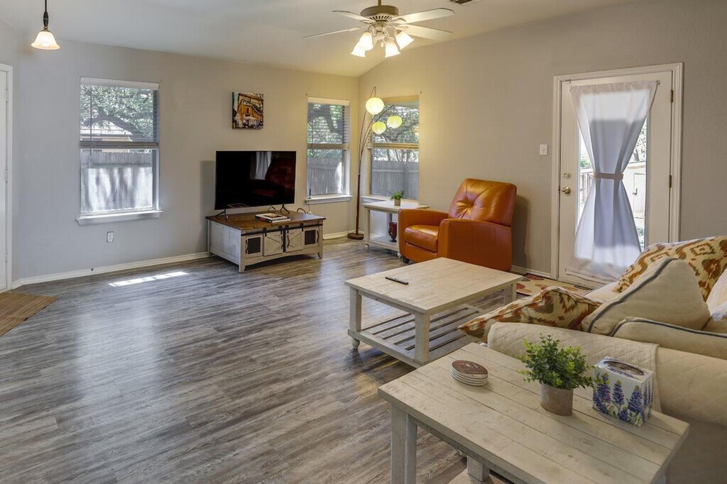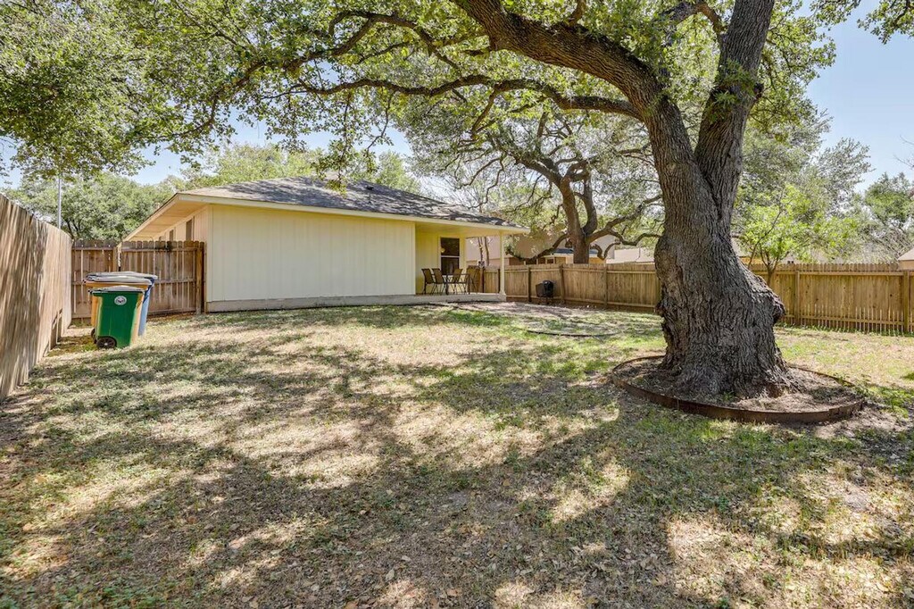 Feel at home in this 3-bedroom, 2-bath vacation rental in Texas. This single-story home requires two steps to enter. This home features a fully equipped kitchen, a modern interior, a private fenced yard, a covered patio, and an outdoor dining area. Enjoy the convenience of a Smart TV, a 6-person dining table, books, a Sleep Number bed with heat and adjustable base, and a washer and dryer. The kitchen includes a refrigerator, stove, oven, microwave, dishwasher, blender, drip coffee maker, toaster, ice maker, water filter, cooking basics, spices, linens, towels, hangers, central AC and heating, ceiling fans, trash bags, paper towels, and complimentary toiletries. Pets are welcome with a $100 fee, plus fees and taxes. Parking is available in the garage for two vehicles and in the driveway for two vehicles. Free street parking is available on a first-come, first-served basis. Walk to the South Park Meadows shopping center for retail and dining, or venture into Downtown Austin. Take the kids to the nearby park. Quiet hours are observed from 10:00 PM to 10:00 AM. No events, parties, or large gatherings are permitted. There are two exterior security cameras: one at the front door facing the front outdoor entry, and one over the driveway facing out. The cameras do not look into interior spaces and record video and sound when activated by motion, recording when they first sense motion and for 30 seconds after the last motion is detected. [SI]