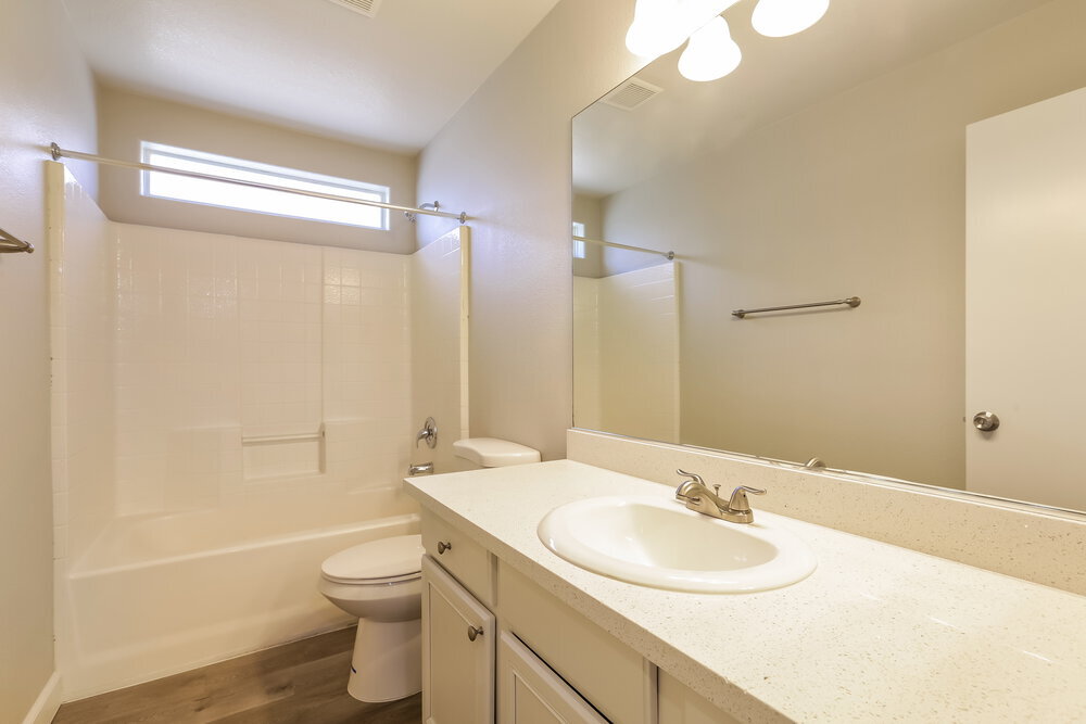 Please note, our homes are available on a first-come, first-serve basis and are not reserved until the lease is signed by all applicants and security deposits are collected. This home features Progress Smart Home - Progress Residential's smart home app, which allows you to control the home securely from any of your devices. Learn more at Want to tour on your own? Click the “Self Tour” button on this home’s listing or call to register for a self-guided showing at a time that works best for you. You'll love living in this three-bedroom and two-and-a-half-bathroom rental home with an attached two-car garage and a convenient laundry room in Las Vegas, NV. Highlights of the sizable living room include modern wood-look vinyl plank flooring, a lighted ceiling fan, and sliding glass doors leading outside. The kitchen comes well-appointed with sleek stainless steel appliances, long gray granite countertops, and a handy built-in microwave. A walk-in pantry offers extra storage space. There's a private balcony in the upstairs primary suite, accessible via sliding glass doors. Plus, the suite includes a walk-in closet and a private bathroom featuring dual vanity sinks, a walk-in shower, and an additional linen closet. Book a time to tour this pet-friendly rental home in person as soon as possible!