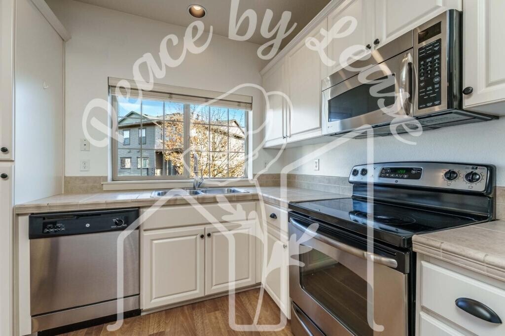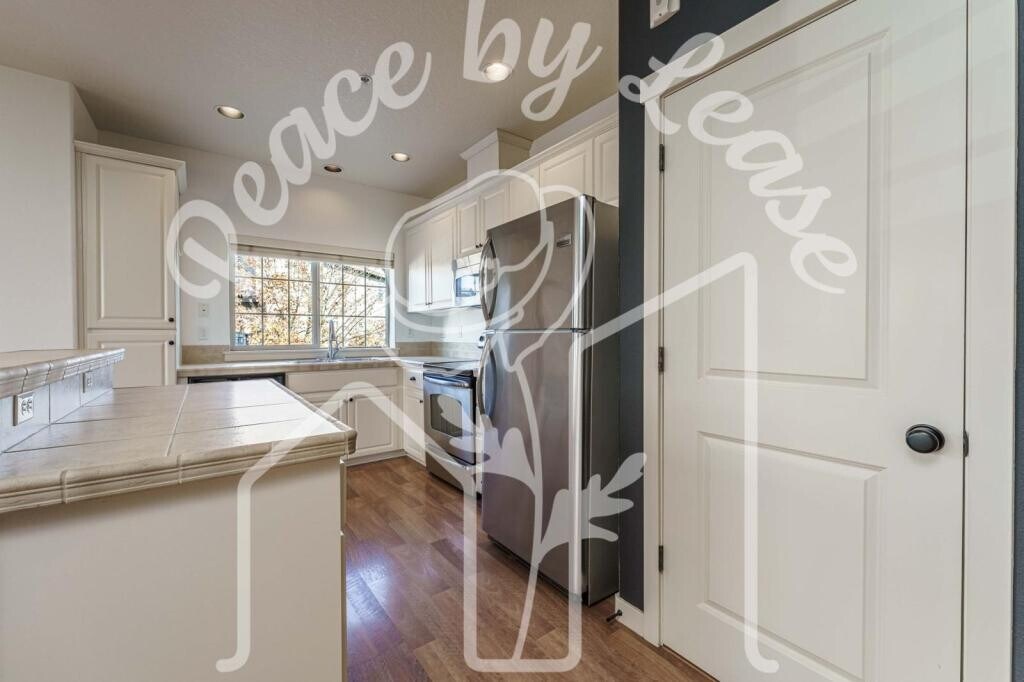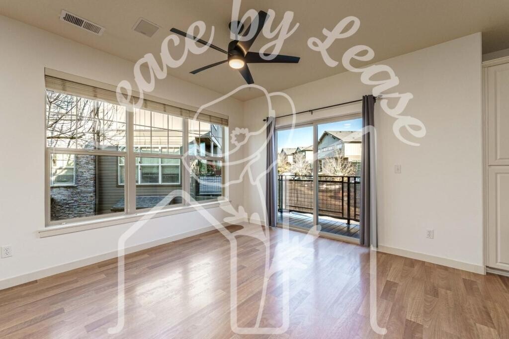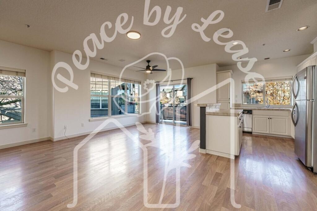 Property Features: ~ 2-bedroom 2.5 bath corner condo- forced air heat, 2 portable AC units provided ~ Ground floor - Attached 1-car garage, plus 1 off-street (driveway) parking ~Main Level - half bath, kitchen/great room, space for dining and living room, with gas fireplace, ceiling fan, built in storage, pre-wired AV setup, plus balcony. ~ Kitchen -dishwasher, refrigerator, electric range, oven, microwave, garbage disposal, plentiful storage, pantry/closet, and large island with tile countertops ~Upstairs - both bedrooms have full, ensuite bathrooms, plus centralized laundry, hard floors Discover your ideal living space in this charming 1267 square foot corner unit home. Built in 2007, this residence features two spacious bedrooms, each with its own full ensuite bathroom, ensuring privacy and comfort. The main level showcases a half bath for convenience, a great room with an open kitchen, and ample space for dining and relaxation. Enjoy modern amenities including a gas fireplace, ceiling fan, and hard flooring throughout upper levels, making this home both stylish and functional. The well-appointed kitchen is equipped with tile countertops, an electric oven/stove, microwave, refrigerator, and dishwasher. A washer and dryer are also included for your convenience. Step outside to your balcony, or through the attached single-car garage with additional storage space, plus an extra off-street parking spot, ensuring that you always have a place to park. Visitor parking permits are available for guests, making hosting a breeze. Enjoy the added benefits of forced air heating and two portable AC units to keep you comfortable year-round. As a resident, you\'ll have access to an impressive clubhouse featuring a pool, gym, and game room, along with a playground. Conveniently located near MAX and bus lines, as well as grocery stores, dining, and shopping. With pets considered and rental assistance accepted, this property is an opportunity not to be missed. Schedule a viewing today and step into your new home! Showings are a required step in the application process and are by appointment only. Please reach out to complete prescreening and schedule a showing time. We look forward to introducing you to your new home! Information regarding Peace By Lease's Application Process, Screening Criteria, and the above required notices can be found on our website at: **********Please review all of these items before reaching out about this unit.**************