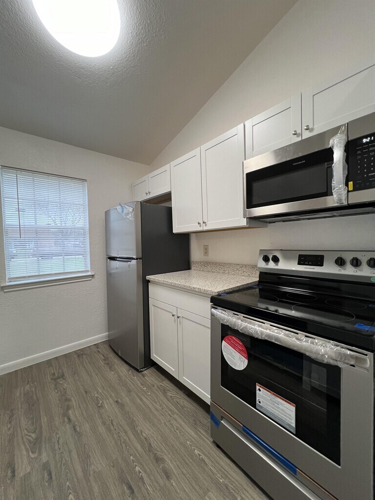 Beautifully Updated Duplex in NW San Antonio - 2 Bed / 2 Bath This thoughtfully renovated duplex offers a stylish and comfortable living space with durable vinyl flooring throughout. The inviting living area seamlessly flows into a spacious kitchen and breakfast nook, perfect for daily living and entertaining. High ceilings enhance the open feel, while the included appliances provide convenience. Enjoy a private yard, dedicated one-car parking, and easy access to Loop 410 and Hwy 90. Conveniently located near Lackland AFB, SeaWorld, Six Flags, shopping centers, and top-rated schools. --------------------- We will be looking at five criteria to make a decision: • Criminal Background - Everyone over 18 years must submit a separate Application • Credit Report - Must show no more than 2 late payments in the past 6 months. • Rental History - NO Evictions, NO Judgements, NO broken leases. • Employment Verification – Monthly Gross income must be equal to or greater than 3X the monthly rent • Animal Screening - All applicants must complete third party screening during the application process.