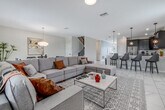 Escape to the perfect retreat for large groups and families with this splendid 8-bedroom corner home that ensures privacy and comfort for up to 16 guests. Feel at home as you enjoy the private pool or explore Champions Gate resort with its water complex, games room, and more. Kids will love the Nemo-themed bedroom, while the home theater and games room provide endless fun. Fulfill all your vacation desires in this remarkable setting. Welcome to this spacious corner home, ideal for large families or groups seeking privacy and comfort. With 8 bedrooms and 5 bathrooms, there's plenty of room for everyone. Step into the newly renovated living room, boasting modern decor and a welcoming ambiance. The well-appointed kitchen is perfect for preparing delicious meals, and outside, the private heated pool offers a refreshing oasis. Entertainment awaits in the game room, ensuring fun for all ages. The first floor features a master king bedroom suite and an additional queen bed suite for added convenience. Upstairs, discover the family room, a dedicated home theater, and 6 more bedrooms sharing 3 bathrooms. Among them are a king bedroom, 3 queen bedrooms, and 2 bedrooms with two single beds each, one adorned with a delightful Nemo theme. Enjoy modern amenities including complimentary Wi-Fi, parking, washer and dryer, and a thoughtful welcome kit with essential bathroom and kitchen supplies. Guests are responsible for replenishing bathroom and kitchen amenities. Pool heating and barbecue grill usage are available for an additional fee. Champions Gate Resort is a resort-style community that offers every imaginable amenity for a blissful stay. It features an impressive clubhouse with a variety of courts and outdoor activities like tennis, beach volleyball, and a golf course, while its restaurant and fitness center will help you stay refreshed and fit. Its swimming pool complex is perfect for a splashy day, with slides, a lazy river, and a kids splash pool. Plus, the resort is just 20 minutes away from Disney Parks, ensuring plenty of opportunities for fun and adventure. Shopping, dining, and entertainment are also within reach, with stores, restaurants, and supermarkets nearby. It's the perfect place for a family getaway, come and experience all the perks of Champions Gate Resort! Quiet hours are between 22:00 and 8:00. [SI]