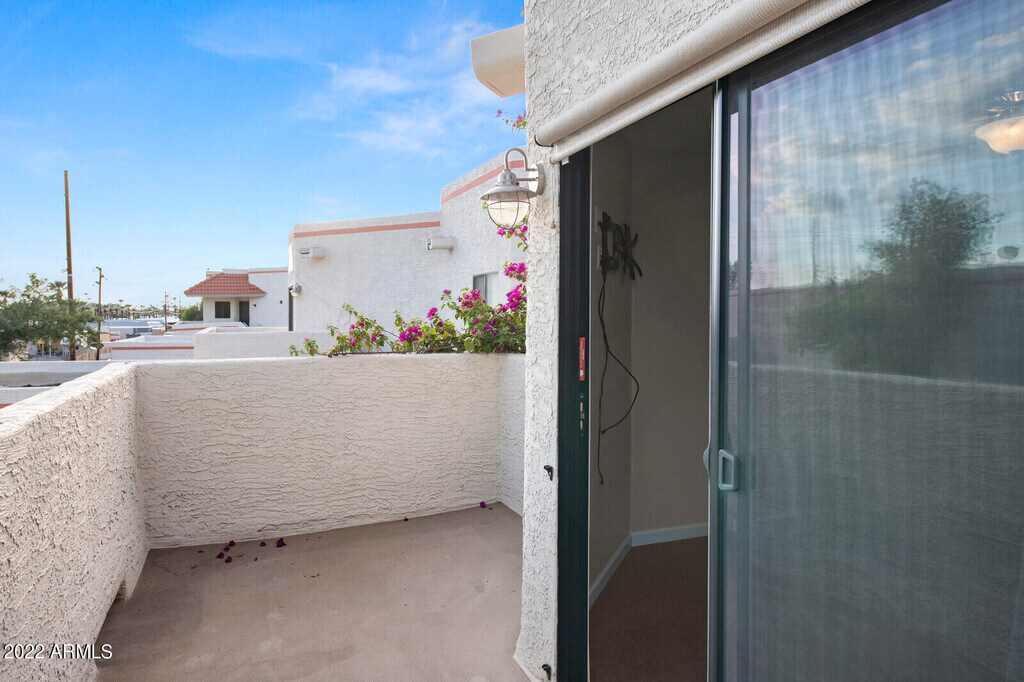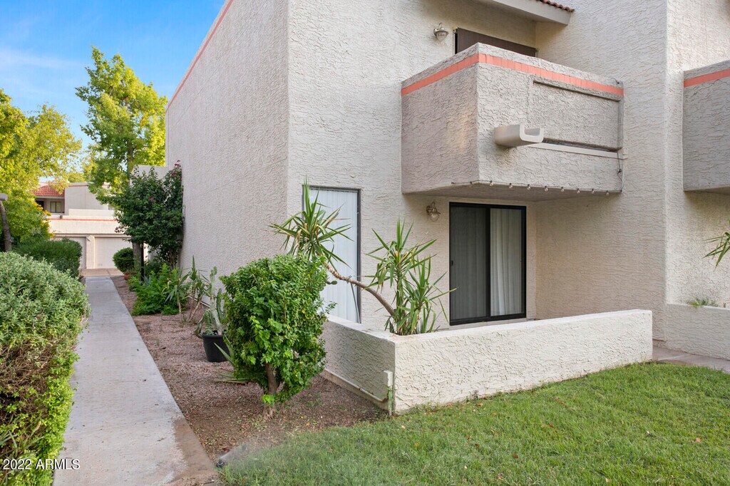 Beautiful,well maintained 2bed / 2.5bath,end unit townhome with 1 car garage! Downstairs features all tile,with granite counters in the open kitchen,great room layout & half bath. Living room opens up to 1 of 3 patios,as well as lush grass common area. Upgraded fixtures throughout unit. Upstairs features split master w/ private patio and dual sinks in master bath. Guest bedroom also has it's own private patio area! 1 car garage w/ washer & dryer just steps from front door. Unit is centrally located between 2 community pools. All of this in a private,South Scottsdale location with easy access to Loop 101,Loop 202,Tempe,General Dynamics,shopping,dining,entertainment and more!