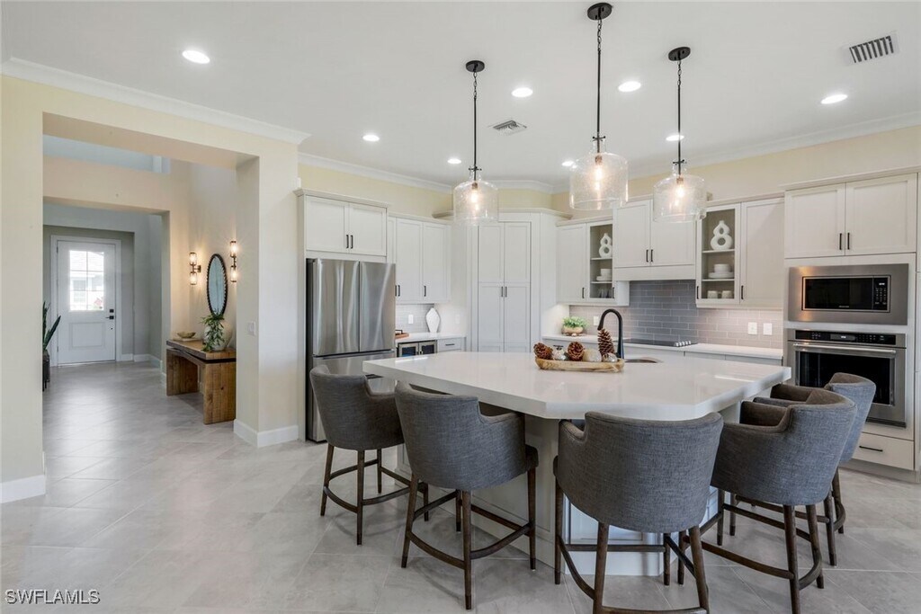 *YES- Full Season is Available!* Welcome to your brand-new,luxurious lakefront escape located within the award-winning Isles of Collier Preserve,where designer furnishings,serene water views,and resort-style amenities come together for an unforgettable Naples getaway. Step into a sun-drenched two-story foyer that immediately sets the stage for the home’s refined,open-concept layout. From here,the living and dining areas flow seamlessly. At the heart of the home is a gourmet kitchen,complete with a spacious central island,premium appliances,and a dedicated wine cooler/beverage refrigerator for effortless entertaining. A wall of sliding glass doors opens to a screened lanai overlooking the lake- perfect for enjoying your morning coffee or unwinding with a cocktail at day's end. Sleeping arrangements are thoughtfully designed for comfort and flexibility. The primary suite offers a king bed,tranquil lake views,two walk-in closets,and a spacious bath with dual vanities and an oversized step-in shower. The second bedroom features a plush queen bed,while the third bedroom includes a full bed plus bunk beds to accommodate both kids and adults with ease. There’s also a den that serves as an office,perfect for remote work or staying on top of emails. Guests have access to all of the resort amenities at The Isles Club,including a state-of-the-art clubhouse with a fitness center,resort and lap pools,tennis and pickleball courts,hiking and biking trails,kayaking,and the Overlook Bar & Grill. Enjoy the community that has it all,just a short drive from the pristine white-sand beaches of the Gulf of Mexico and downtown Naples’ vibrant 5th Avenue South,where you’ll find live music,theater,art fairs,classic car shows,upscale shopping,and exceptional dining.