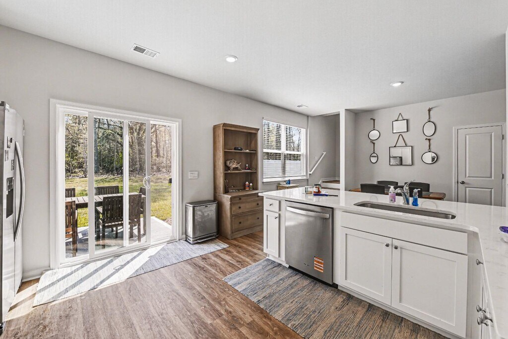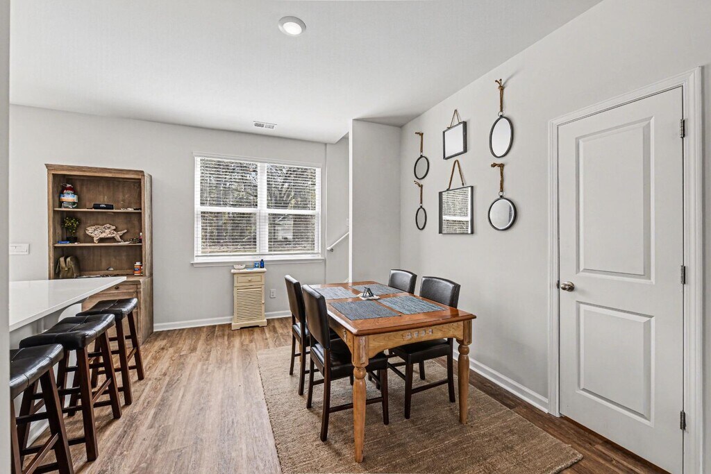 Discover comfortable Lowcountry living in the desirable Settlement at Salamander, a peaceful, wooded community in North Charleston conveniently located off Otranto Road and just minutes from I-26. Enjoy easy access to nearby shopping, dining, and entertainment while still coming home to a quiet neighborhood setting. This well-appointed 3-bedroom, 2.5-bath home with a 1-car garage offers a functional layout ideal for everyday living and entertaining. The spacious main level features an open family room and dining area that flows seamlessly into a modern kitchen complete with gray cabinetry, granite countertops, a large peninsula with seating for four, and stainless steel appliances included a gas range, microwave, dishwasher, and refrigerator. Smart home features such as a video doorbell, keyless entry, thermostat control, and voice-activated system add convenience and peace of mind. This home is the perfect blend of comfort, style, and location—ready for you to move in and enjoy...