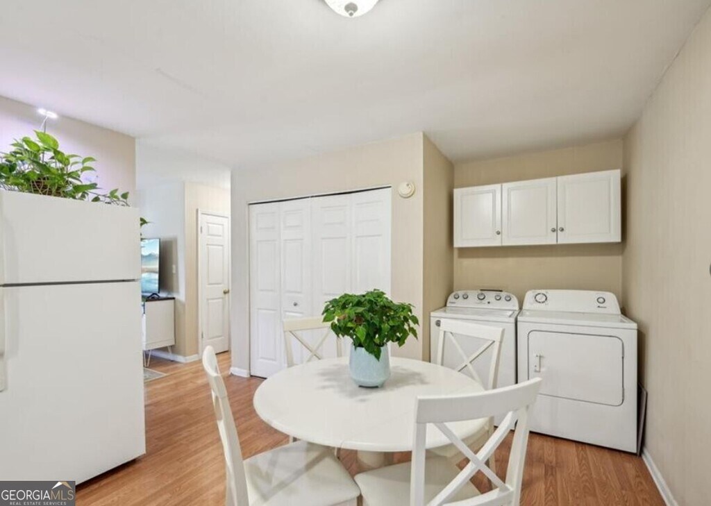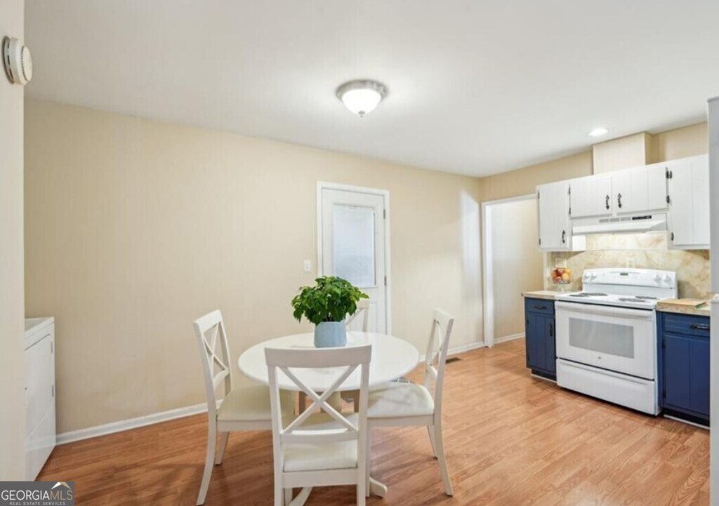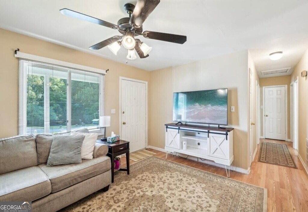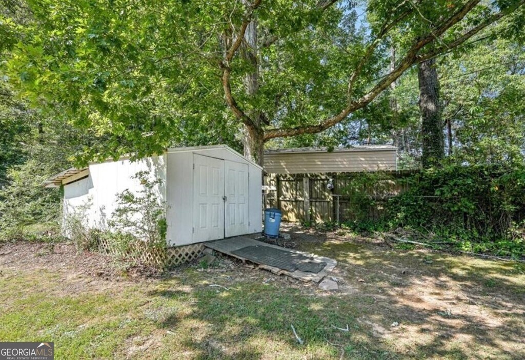Welcome home to this charming 3 bedroom, 1.5 bath brick ranch in downtown Dawsonville, ideally located near schools, the public library, shopping, Veterans Park, Main Street Park, and Dawsonville City Dog Park. Functional floor plan with an eat-in kitchen and separate living room. Laundry hookups are centrally located in the kitchen with cabinet space above. The one-car carport provides direct entry into the mudroom along with an exterior entry storage room ideal for tools or extra storage space. Updated laminate flooring throughout and vinyl in the bathrooms for easy maintenance (no carpet!) Enjoy the large corner lot from the back deck. MLS ID 10677478