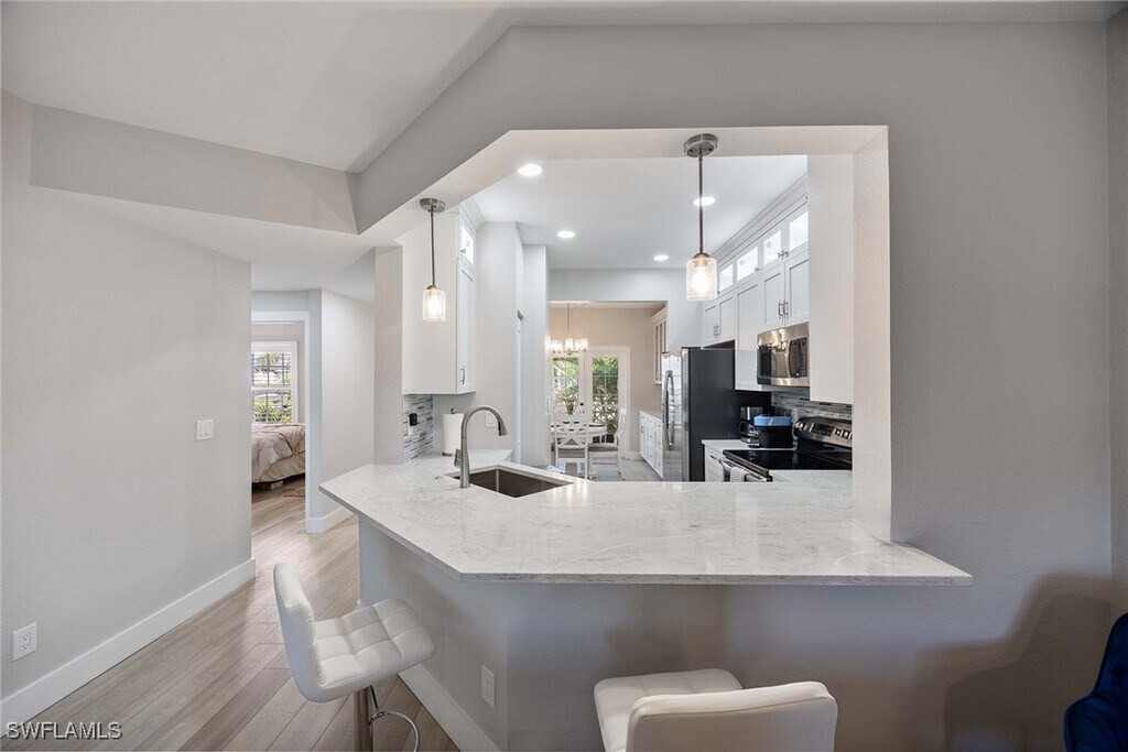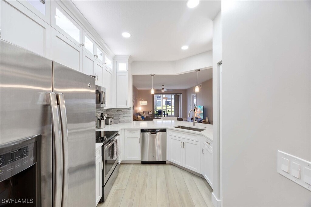 Available for all of the 2026 season at $8500 per month. Discover refined luxury in this fully updated first-floor residence at Laurel Oaks in Pelican Bay. This elegant 2-bedroom,2-bathroom condominium showcases timeless craftsmanship,highlighted by newly installed shaker cabinetry in the dining room and kitchen—offering both enhanced storage and a sophisticated space for entertaining. French doors lead to a welcoming front porch,seamlessly blending indoor and outdoor living. The kitchen is designed to impress,featuring quartz countertops,a stylish backsplash,GE stainless steel appliances,and luxury laminate wood flooring. Both En-suite and guest baths have been thoughtfully upgraded with high-end finishes. Overlooking tranquil lake views,the Lanai is equipped with electric shutters for privacy and peace of mind. Residents of Pelican Bay enjoy access to an unrivaled lifestyle with amenities that include a heated community pool,spa,and gathering room. Beyond the community,Pelican Bay is celebrated for nearly three miles of private beaches,complete with beach staff offering loungers,umbrellas,cabanas,sailboats,and kayaks. Additional premier amenities include private beachfront dining,state-of-the-art fitness facilities,tennis courts with professional shops,and a vibrant community center.Perfectly located near the renowned Waterside Shops,residents enjoy convenient access to luxury retailers such as Gucci,Louis Vuitton,and Tiffany & Co.,further elevating the lifestyle this prestigious community affords. This beautifully renovated condominium presents an extraordinary opportunity to experience the very best of Naples living. Tenant agrees to cleanings twice per month at tenant expense with PSIR cleaner. *Information deemed Reliable but not Guaranteed*