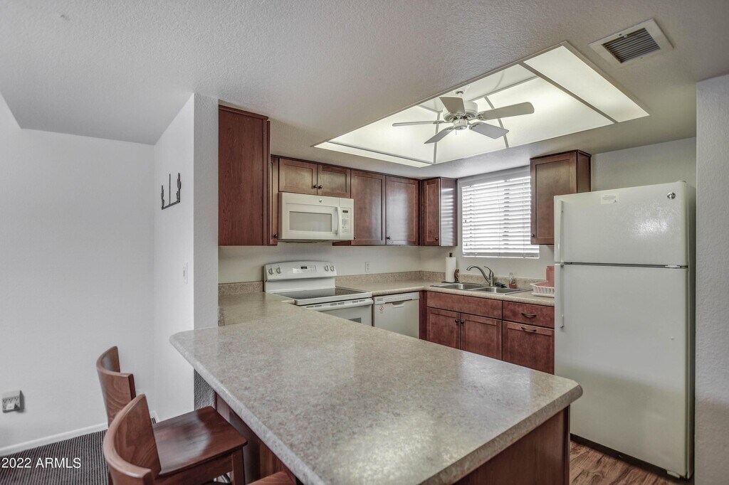UPDATED FURNISHED Rental in the heart of CHANDLER. 2 bedrooms & 2 bath condo is Move-in Ready,- complete with Refrigerator,Washer,Dryer,and Everything you need to enjoy the Beautiful Arizona Climate! Condo is located in the back of the complex offering peace and quiet Within walking distance to shopping,restaurants,Parks,Chandler Fashion Square Mall,Chandler DownTown and loop 101 and 202. The complex offers a heated swimming pool,heated Spa and barbecue grills. Just bring your personal belongings! Available immediately.