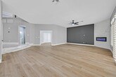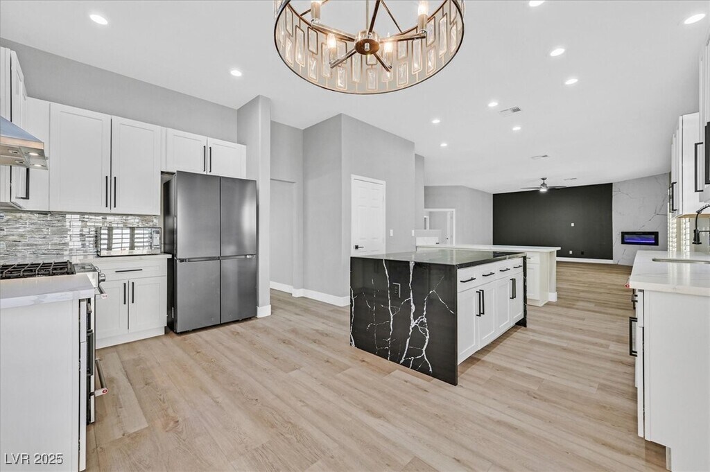 Fully remodeled 5 bed plus Loft / 4.5 bath home in the guard-gated Tiburon community. Nearly 4,400 sq ft with open floor plan, tall ceilings, and abundant natural light. Chef’s kitchen features large island, walk-in pantry, quartz counters, stainless appliances, and new cabinetry. Multiple living areas include formal living, family room w/fireplace, and upstairs loft. Oversized primary suite offers fireplace, spa-style bath w/dual sinks, soaking tub, separate shower, and walk-in closet. Downstairs bedroom w/¾ bath is ideal for guests. Backyard includes full-length patio cover, built-in BBQ, and low-maintenance landscaping. 3-car garage, newer AC units, and updated flooring, paint, and fixtures throughout. Close to shopping, dining, schools, and freeway access.