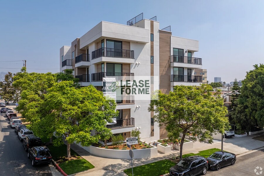 Welcome to Alcott Flats A Brand-New 2025 Community in the Heart of Pico-Robertson Introducing 8867 Alcott Street, a newly built boutique collection of just 19 thoughtfully designed residences in one of West L.A.'s most desirable neighborhoods. Completed in 2025, Alcott Flats blends timeless Los Angeles charm with contemporary finishes and modern conveniences. The unit offers spacious open layouts, abundant natural light, and designer touches throughout. Enjoy hardwood-style flooring, chef-inspired kitchens with premium LG appliances, full-size in-unit laundry, and spa-like bathrooms designed for relaxation. Every detail was considered from walk-in closets, floor-to-ceiling windows, and monitored solar shades to private balconies (including select wraparound layouts) offering sweeping city views. All utilities are sub-metered for added convenience and efficiency. Residents will also enjoy EV charging on-site, all while being steps away from Pico-Robertson's rich culture, dining, and daily essentials. Whether you're seeking style, comfort, or convenience, Alcott Flats delivers elevated living in a vibrant urban setting. Be among the first to call this exclusive 2025-built community home.