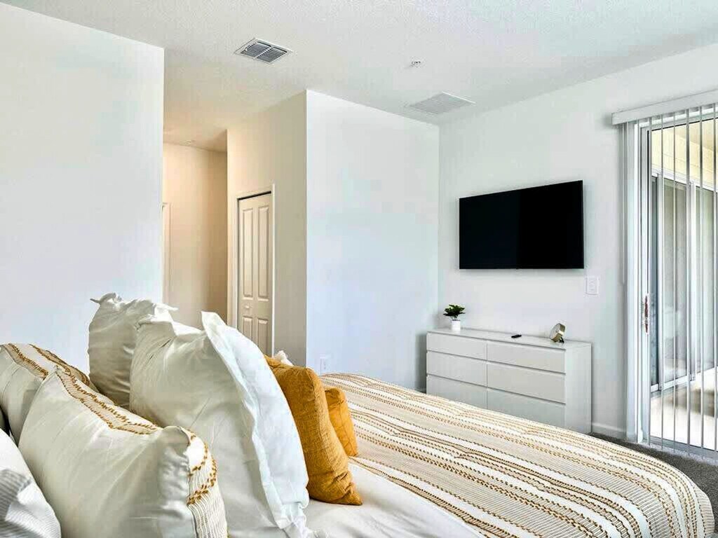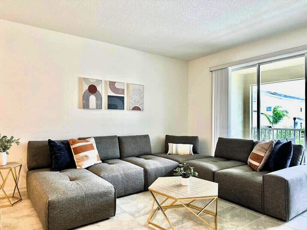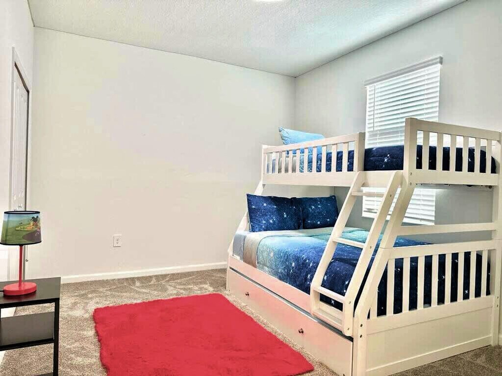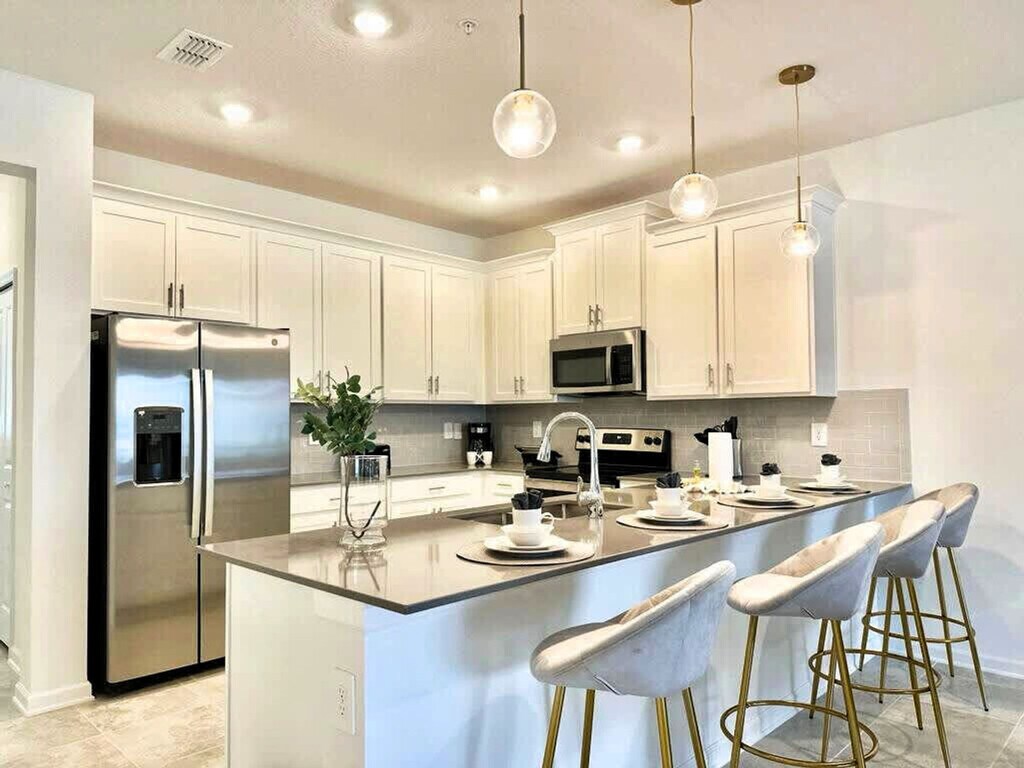 Make unforgettable memories in this spacious, modern home located on the second floor, just minutes from Disney, Universal, and the brand-new Epic Universe. Perfect for families and groups, this apartment features a fully equipped kitchen, fast Wi-Fi, and everything you need to relax and have fun. Feel at home with unlimited access to 2 luxury clubhouses and a thrilling waterpark, all without resort fees. Enjoy full complimentary access to all the wonderful resort amenities, including the gym, heated swimming pools, lazy river, water park, splash pad, kids craft play-zone, Oasis Clubhouse bar, volleyball courts, basketball, and tennis courts. The main clubhouse Oasis Club and the majority of its amenities are located 7 minutes away by car. A second clubhouse offers a pool, water slide, 19-hole mini golf, event stage, bar, hammocks, and tiki cabanas. Some amenities may have extra fees. Additional services such as a spa center, golf, and restaurant access are available for an extra fee. Optional services like Pack and Play and a high chair can also be arranged at an additional cost. Please inquire prior to acquiring any service to ensure availability. Located in Davenport, FL, this home is close to supermarkets, restaurants, and golf courses. Publix is just 1.5 miles away, and Target is 8 miles away. Major attractions like Disney, Universal, and SeaWorld are within a short drive, making this the perfect spot for exploring the best of Orlando. Champions Gate Golf Course is only 1 mile away, and transportation options like Uber and Lyft are readily available. Guests must be at least 18 years old to book a reservation. No unregistered guests, smoking, or pets are allowed inside. The property is exclusively for vacation use, and filming without prior authorization is not permitted. Check-in is keyless, with a code provided prior to arrival. Essentials are provided for the first night only. To access the resort, guests must share a guest list to create and share QR codes. The property is privately owned, and neither the owners nor the management company accept responsibility for personal injury, accidents, loss, or damage to people or personal effects. The property includes a dedicated workspace with a desk and high-speed internet, making it remote work-friendly. A laptop computer is not included. [SI]