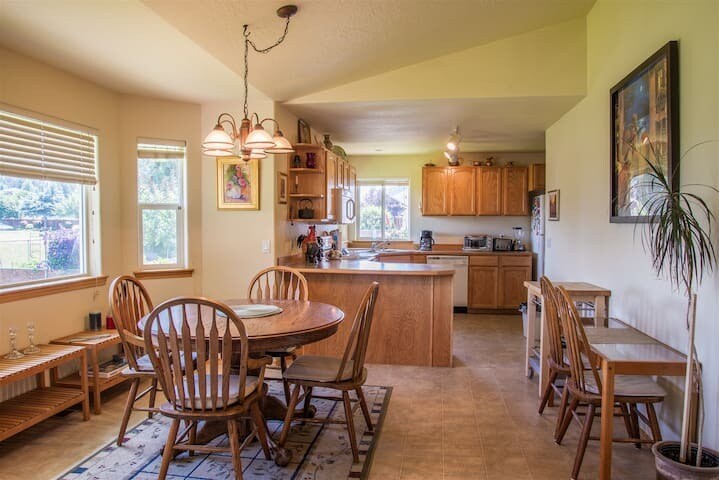 Monthly Furnished Rental available now until 06/30/26. . 3 bd/2 bath, fenced yard. Electric, Gas, Water, Sewer, Trash, Internet, Gardener all included. This all-inclusive, furnished, monthly rental home in Hayden is available now. It is a centrally located rancher only 15 minutes from downtown Coeur d'Alene. Whether you're looking for an extended vacation or are a resident in need of temporary lodging, this home is a great fit! The welcoming living room has comfortable leather seating, TV, cable, DVD player, a large collection of DVDs, and access to the covered porch and backyard. Just off the living room is the dining room with a wooden dining table with seating facing the beautiful Northwest views. Directly behind the dining room is the spacious kitchen. The fully stocked kitchen has ample counter space and light streaming in through the windows. The spacious master bedroom has a queen bed and private patio access. The master bathroom has double sinks, a shower, and a luxurious corner soaking tub below a large window. Plenty of room awaits in the second and third bedrooms, each with two twin beds. The home's second full bathroom has a standing shower. With open land and mountain views stretching behind the large fenced backyard, the outdoor area feels like an incredible scenic oasis on the covered deck that includes a BBQ, table, and chairs. ** The garage is not available to tenants. Dogs ok, no cats. No smoking. All utilities included.