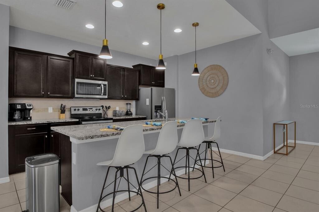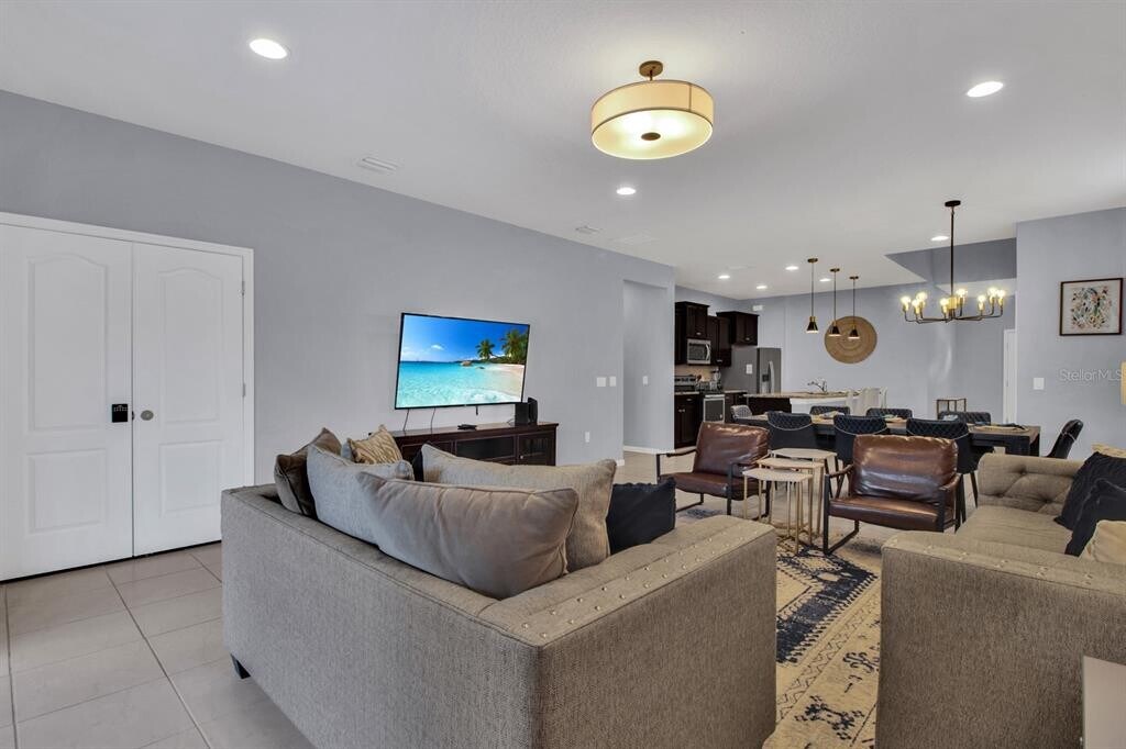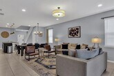 Exquisite 7-Bedroom Home in Windsor at Westside Located in the highly desirable gated community of Windsor at Westside,this fully furnished 7-bedroom,5.5-bathroom residence offers the ideal combination of comfort and resort-style living. The upgraded kitchen features granite countertops,a central island with breakfast bar,and stainless-steel appliances. The home is tastefully furnished throughout,and the private heated,screened pool provides the perfect space for relaxation and entertainment. Community amenities include a lakefront clubhouse,resort-style pool,lazy river,splash pad,and fitness center. Conveniently located near Publix,Walmart,restaurants,and shopping,with golf courses close by. The property’s location is unmatched—just minutes from Disney World and a short drive to Universal,SeaWorld,Premium Outlets,and Orlando International Airport.