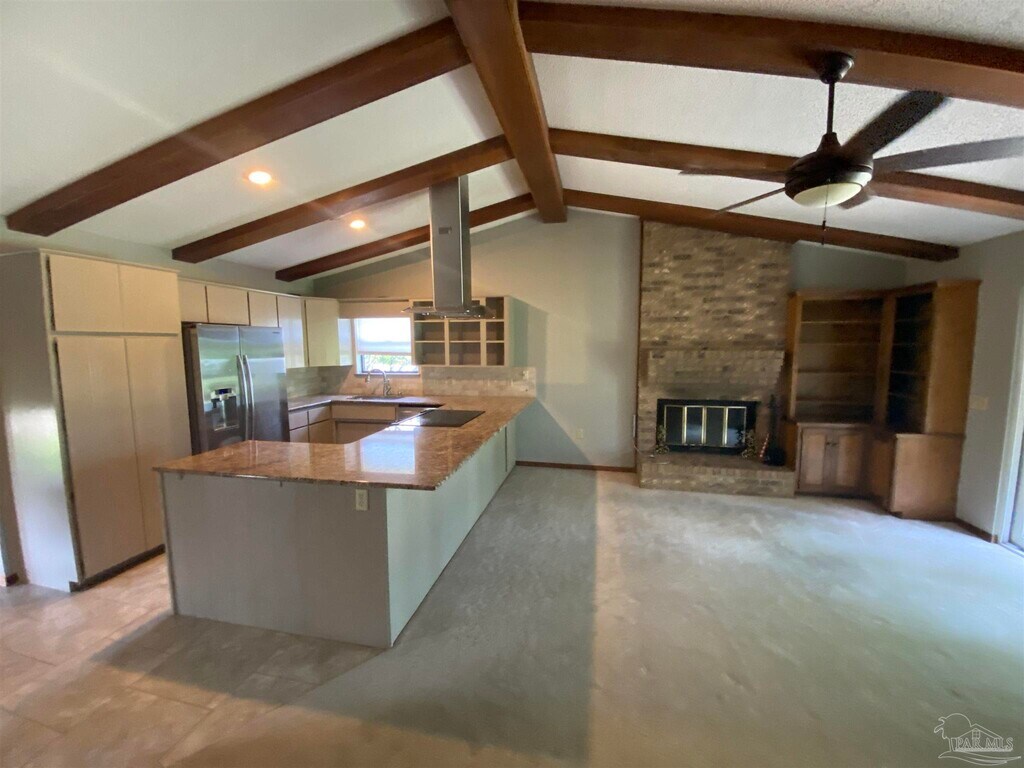 This gorgeous 4-bedroom,3-bath,2,805-square-foot brick home sits beneath beautiful shade trees and blends classic comfort with mid-century modern flair. Inside,a spacious living room with vaulted ceilings,exposed beams,and a wood-burning fireplace creates an inviting centerpiece for daily living. The updated kitchen features granite countertops,stainless-steel appliances,and plenty of space to cook and gather. A large Florida room with dramatic ceilings overlooks the golf course perfect for relaxing mornings,casual dinners,or weekend cookouts while you watch the players on the green. With beautifully updated bathrooms,generous storage,and an attached two-car garage,this home offers both style and function. Located within walking distance of Scenic Hills Country Club,it combines comfort,character,and a peaceful setting in one of Pensacola’s most desirable neighborhoods. Ready to make this your new home? Please dial to schedule your personal showing today,and visit to complete your application online. There is a $250 Move-In Fee Per Household and a $50 Lease Fee Per Tenant. Pets allowed with Owner Approval. Pet Fee and Monthly Pet Rent apply.