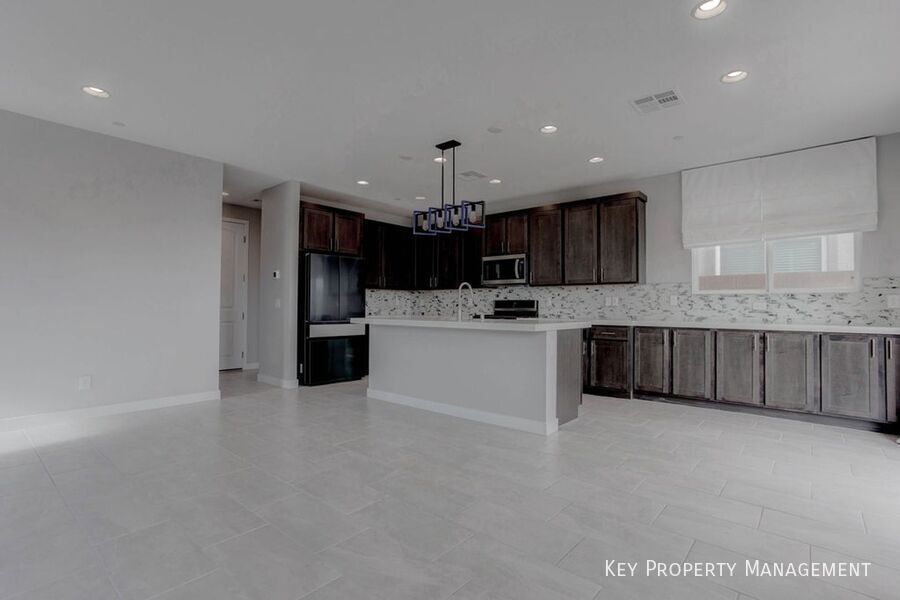 Located in the gated Eaglepointe community of Skye Canyon, this nearly new corner-lot home offers 3 bedrooms, 3 bathrooms, and 2,129 sq ft of modern living with no rear neighbors. The upgraded kitchen features quartz countertops, extended cabinetry, sleek appliances, and a convection oven, complemented by 9-foot ceilings, 8-foot doors, and an oversized 10-foot sliding door. Upstairs, a spacious loft provides flexible living space, while the primary suite includes a spa-like bath with soaking tub, separate shower, and dual vanities. Enjoy a covered patio and a two-car garage equipped with an EV charger, tankless water heater, and water softener—comfort, style, and smart living all in one. Covered Patio Ev Charger Quartz Countertops Tankless Water Heater