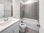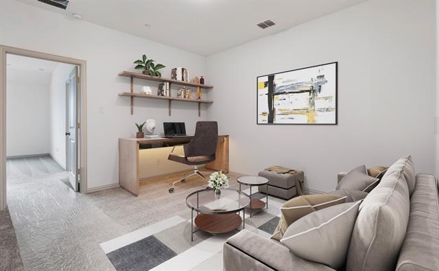Experience modern living in this beautifully maintained 2-bedroom, 2.5-bath townhome located in the desirable Grove Frisco community. Built in 2024, this 1,801 sq. ft. home features a bright, open layout with contemporary finishes and an abundance of natural light. The chef-inspired kitchen is both stylish and functional, boasting a large island, granite countertops, stainless steel appliances, a gas cooktop, and custom cabinetry with pot and pan drawers. Whether you're cooking for guests or enjoying a quiet evening in, this space delivers. Upstairs, a spacious loft provides the perfect flex space for a second living area, home office, or media room. The private primary suite offers a relaxing retreat with an oversized shower, walk-in closet, and linen storage. Two secondary bedrooms are thoughtfully placed nearby and share a full bathroom, ideal for family or guests. Enjoy smart home features, high-speed internet connectivity, and a low-maintenance lifestyle with all landscaping included. Step outside to your covered mini patio or take advantage of the extensive amenities this master-planned community offers, including a clubhouse, fitness center, multiple pools, playgrounds, and scenic walking trails. A 2-car garage adds everyday convenience. Situated in top-rated Frisco ISD and close to parks, schools, and shopping, this home blends comfort, community, and convenience in one exceptional package. A REFRIGERATOR, WASHER & DRYER are included, making this home truly move in ready! HOME FACES WEST.