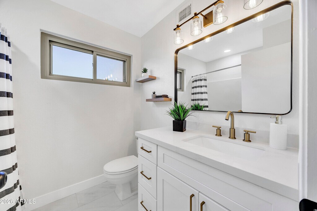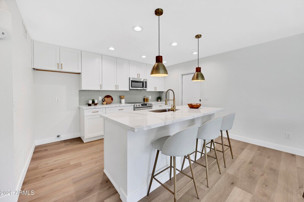 This beautiful 3 bedrooms 2.5 bathrooms house is located in North Peoria neighborhood. The house is totally renovated with new cabinets,new quartz countertop,new appliances,new flooring,new tiled showers and bathroom fixtures,new window coverings,dual pane windows with vinyl frames. New landscaping with artificial turf. Corner lot. Closer to 101 freeway,shopping and restaurants. You won't be disappointed. Move in ready!