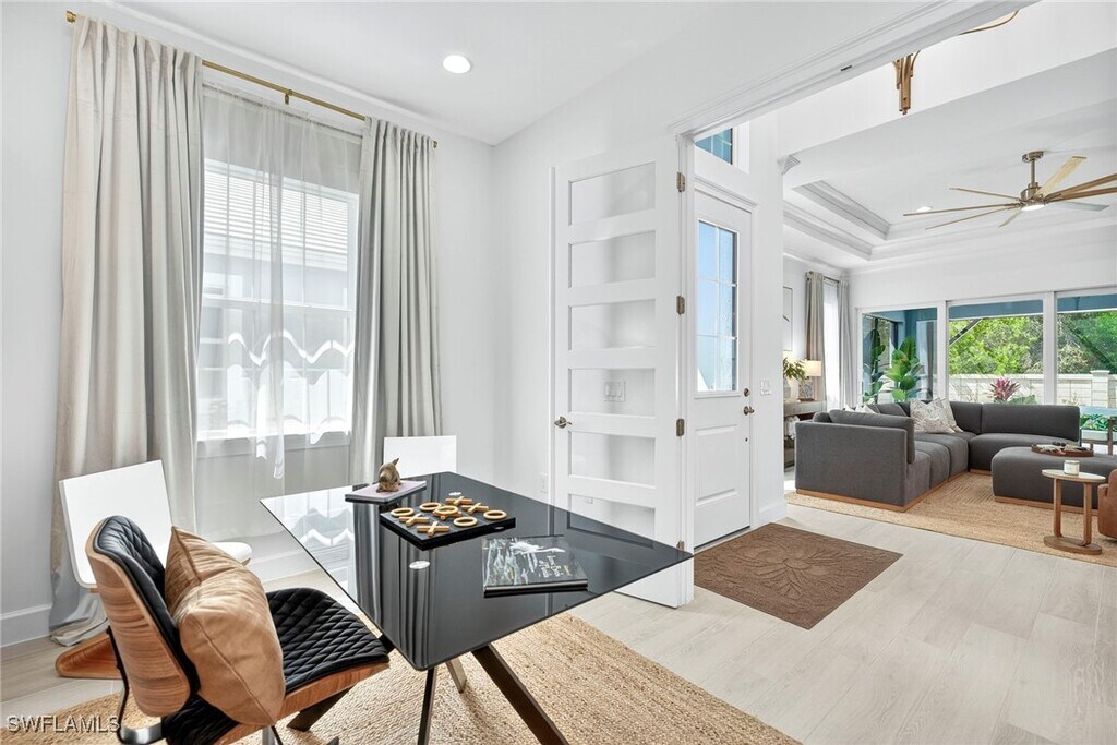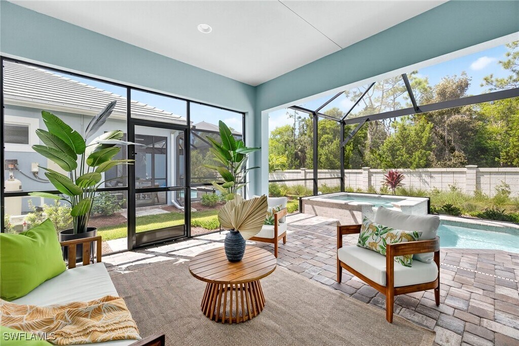 This newly available,never-before-occupied residence offers an exquisite retreat within the highly sought-after Isles of Collier Preserve. Designed with luxury and comfort in mind,this home presents a unique opportunity for resort-style living in Naples,Florida. The property features two spacious bedrooms and two modern bathrooms,meticulously designed and designer-furnished to create an inviting and sophisticated atmosphere from the moment you step inside. A private pool,complemented by a screened-in lanai,provides an exclusive oasis for relaxation and entertainment. This outdoor space is perfect for enjoying the Florida sunshine,dining al fresco,or simply unwinding in a tranquil setting. The private pool offers a refreshing escape,enhancing the overall appeal of this pristine property. Beyond the confines of this luxurious home,the Isles of Collier Preserve community delivers an unparalleled array of resort-style amenities. Residents have access to well-maintained tennis courts,a sophisticated on-site restaurant,a grand resort-style swimming pool,and a unique swim-up bar,providing diverse options for recreation and dining without ever needing to leave the community. These facilities foster a vibrant and engaging lifestyle,catering to various interests and preferences. The Isles of Collier Preserve also features a clubhouse,wellness facilities,pickleball courts,and extensive hiking and biking trails,further enriching the living experience. Strategically located,the residence offers exceptional convenience,positioned approximately 10 minutes from both downtown Naples and its pristine beaches. This prime location allows for easy access to Naples' vibrant culinary scene,upscale shopping districts,cultural attractions,and the serene Gulf Coast shoreline. Whether seeking a day of beachside relaxation,an evening of fine dining,or exploring local boutiques,everything is within a short,convenient drive. This property is ideally suited for those seeking a luxurious vacation home,ready for immediate enjoyment. Its combination of a brand-new,designer-furnished interior,private pool,and access to an extensive suite of resort amenities within a prime Naples location makes it an exceptional offering for discerning individuals.