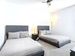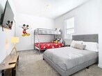Feel at home in this inviting second-floor apartment, where you'll need to climb stairs to access your retreat. The property boasts a master bedroom with a king-size bed and en-suite bathroom, a second bedroom with two queen-size beds, and a thematic Disney bedroom featuring a bunk bed and a queen-size bed. The social area includes a fully equipped kitchen, a dining room for six, and a living room with a single-size sofa bed. Enjoy full complimentary access to resort amenities, including a gym, heated swimming pools, a lazy river, and a water park. The main clubhouse is just a 7-minute drive away, and a second clubhouse offers a pool, water slide, mini golf, and more. The apartment is equipped with a fully equipped kitchen, four smart TVs, a washer/dryer, and high-speed internet. Paid add-ons include access to a spa center, golf, and certain clubhouse amenities. Optional services such as Pack and Play, high chair, early check-in, and late check-out are available for an additional cost. Free parking is provided on-site. Located conveniently near major attractions, this apartment is 14 miles from Disney World Magic Kingdom and 22 miles from Universal Studios. Nearby, you'll find supermarkets like Publix just 1.5 miles away, and local restaurants and golf courses within a short drive. Transportation options include Uber and Lyft for easy access to the surrounding area. Guests must be at least 18 years old to book a reservation. No unregistered guests, smoking, or pets are allowed inside. The property is exclusively for vacation use, and filming is not permitted without prior authorization. Check-in is keyless, with a code provided prior to your arrival. A pre-check-in cleaning is conducted, and check-out follows WHO and HSE standards. The apartment includes a dedicated workspace with a desk, perfect for remote work. High-speed internet ensures a seamless work-from-home experience.