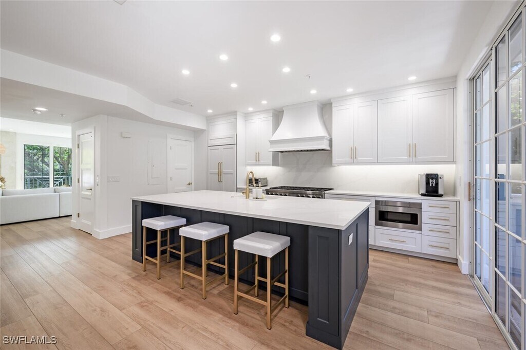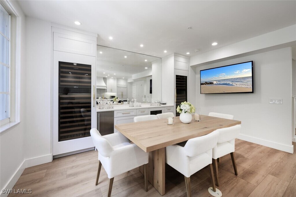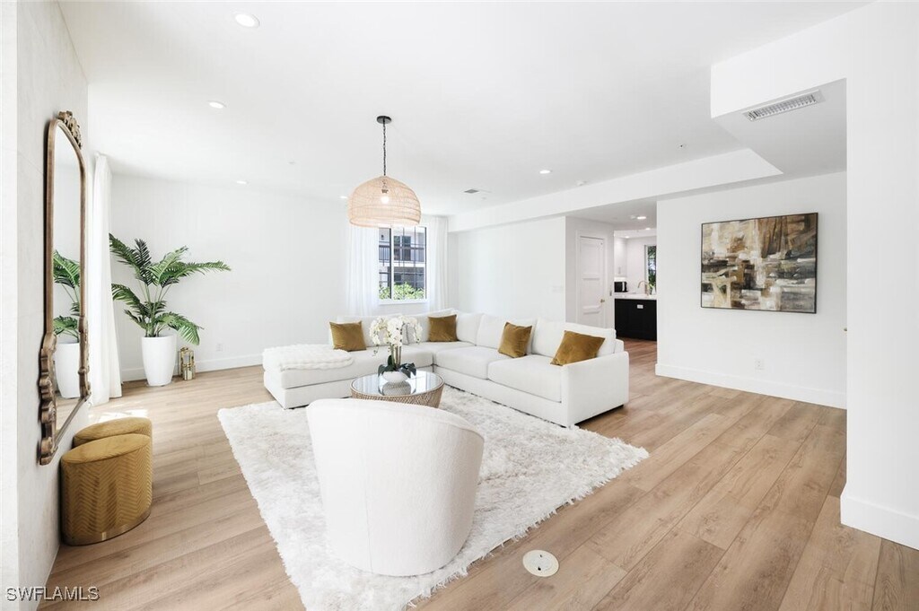 Nestled between the iconic 5th Avenue South and the charming Third Street South,this exquisite 3 bedroom plus den,4 bathroom villa is the ultimate winter retreat in Naples. Spanning nearly 4,500 square feet across four sun-drenched stories,the home features elegant furnishings,a neutral color palette,and refined finishes throughout. The inviting living room boasts a stylish sectional,rich wood flooring,and French doors that open onto a private balcony. Perfect for culinary enthusiasts,the chef’s kitchen is outfitted with premium Sub-Zero and Wolf appliances,custom cabinetry,a gas range,and a generous island with breakfast seating. Adjacent to the kitchen,the dining area showcases a chic table for six,complemented by a wet bar and dual wine refrigerators—ideal for entertaining. Take your private elevator to the luxurious primary suite,complete with a king-sized bed,a dedicated seating area with a large-screen TV,a spacious walk-in closet,and a private balcony. The primary bathroom features a walk-in shower and a custom-designed mirror for a spa-like experience. Guests will feel right at home in the two ensuite bedrooms—one with a king bed and the other with a queen. A comfortable family room offers additional space to relax,with access to a secluded brick-paver patio framed by lush,tropical landscaping. Additional conveniences include a large,attached two-car garage with ample storage. Just outside your front door,you'll find upscale dining,boutique shopping,and the pristine white sands of Naples’ beaches. Live exceptionally in Old Naples.