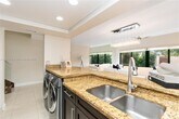 GORGEOUS 3/2 Townhome in highly desirable Calusa Point! IMPECCABLE, meticulously maintained unit. High-end finishes. Unlike other units in Calusa, this upstairs master bedroom is fully enclosed for privacy. Bright, open living space features luxury porcelain floors, designer lighting, high ceilings. Kitchen with large countertop flows into main living area with expansive sliding doors to your private patio—perfect for entertaining or relaxing. New roof, new appliances. Wood floors in bedrooms, remodeled bathrooms. Large master with large walk-in closet and custom built-ins. Triple-pane impact windows/doors provide superior storm & intrusion protection. 2 assigned parking spot out front, plus guest parking. Unit is unfurnished. Monthly internet, Wi-Fi & alarm system INCLUDED with rent.