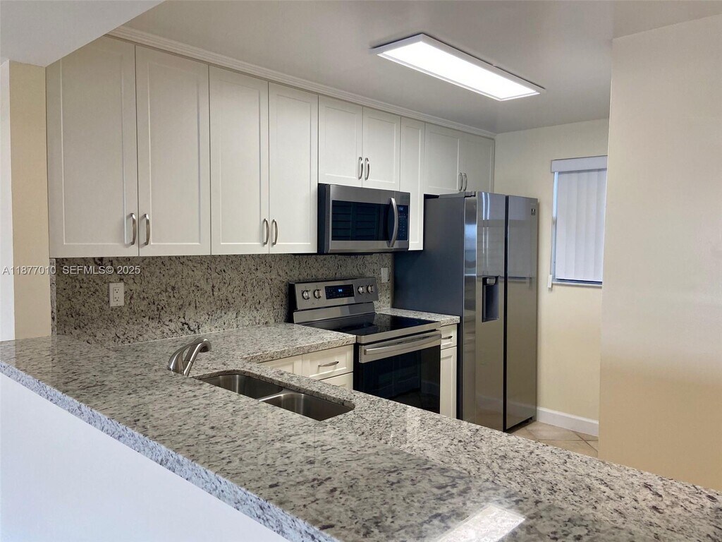 Completely remodeled and spacious corner property. 1 Bedroom, 1 bathroom, condo in a great location! New washer and dryer inside the unit, new air conditioning, heater, kitchen, refrigerator, dishwasher, microwave, laminate floor, vertical blinds, skirting board, complete accordion shutters, all brand new and all property paint. Easy & quick access to Florida International University, airport, expressways, shopping & more. Property is located in a well-kept community with tennis courts, pool & roaming security patrol. This property features brand new appliances and impact windows.