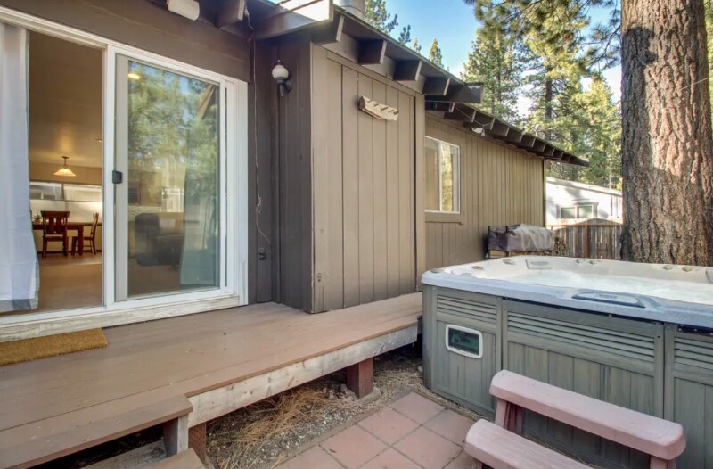 Property Id: 595354 Updated 2 bedroom / 2 bath single story home in highly sought after Al Tahoe neighborhood. Detached 2 car garage with plenty of parking out front. Fenced back yard with Sundance hot tub and new shed. Kitchen and both bathrooms remodeled with granite counters and updated SS appliances. Nice open floor layout in kitchen/living room area. Living room has a wood burning fireplace with gas pilot for easy operation. Washer and dryer, and brand new furnace installed in 2020. House is in impeccable condition and always well maintained by owner.