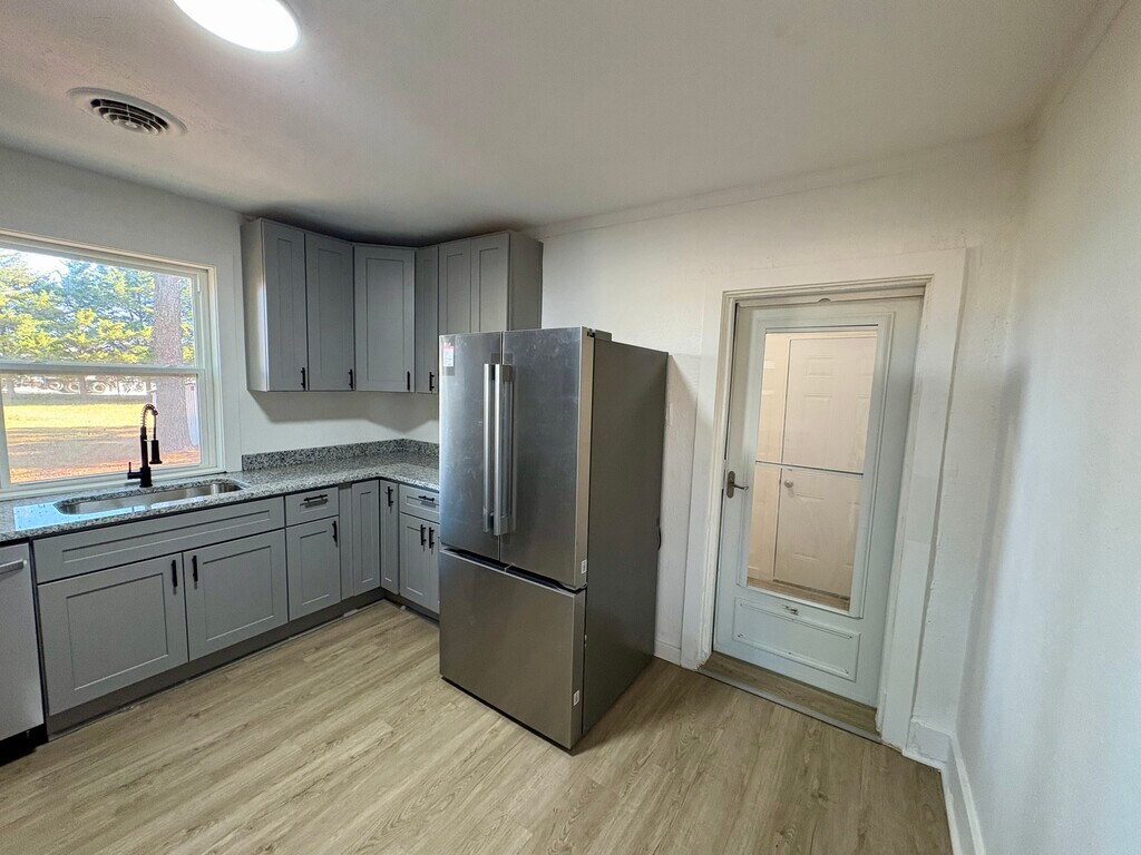 Rent this Adorable ranch home that has been updated with a new kitchen, new floors, new lighting and new plumbing fixtures! Enjoy living is a home that is freshly updated featuring 3 bedrooms, kitchen, living, dining, bathroom, enclosed front porch, utility room, and a large yard.