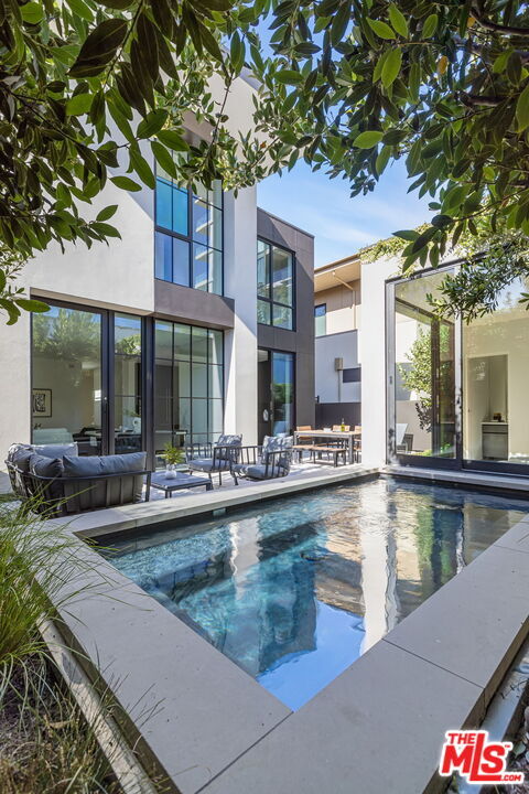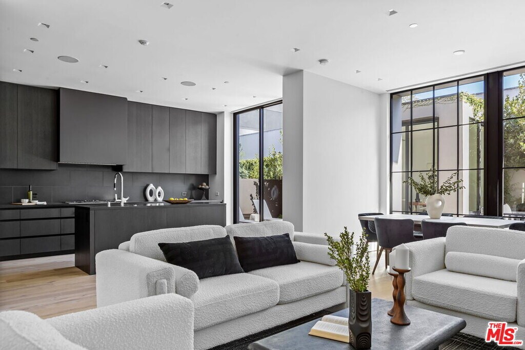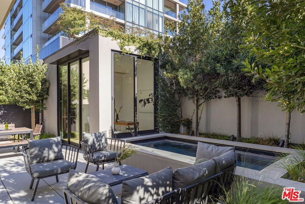 Glass House at 8899 Beverly. West Hollywood luxury presides at 8890 Rosewood Avenue where incredible resort amenities meet architectural brilliance. This exceptional home is part of a unique collection of eight signature homes crafted by the world-renowned architect Olson Kundig, each boasting a distinctive material palette and a one-of-a-kind living experience. Glass House is a stunning home with unparalleled features that epitomize comfort and understated opulence. This three-bedroom, two-level masterpiece immediately makes an impression with a modern exterior featuring exposed structural steel and a curved standing-seam metal roof, complemented by a painted metal trellis wrapping from the front to the side entry. True to its name, Glass House makes use of extensive glazing, soaring ceiling heights, and a natural flow between the indoor and outdoor environments to create open, airy living spaces. Sophisticated yet welcoming in design, the interior boasts wood floors, Lutron HomeWorks QS System lighting, and Fleetwood glazed doors and windows. The gourmet kitchen features top-of-the-line Gaggenau and Miele appliances, dark-stained white oak cabinetry, and custom paneling. A custom stairwell with open-riser wood treads and exposed steel curates an artful transition from level to level.Upstairs, the primary suite includes a private balcony adorned with a woven-wire mesh guardrail and steel grate decking, providing a tranquil retreat to unwind and admire the views. The ensuite bathroom has full stone flooring and walls made of Danube marble. Outside, find a chaparral-inspired garden curated by Coen + Partners, a pool and spa, and a guest house. Explore the eclectic palette of crepe myrtle and cork oak trees, exuberant bougainvillea, sea lavender, and fairy crassula, creating a picturesque backdrop for outdoor gatherings. The signature collection deftly blends individuality and privacy with exceptional resort lifestyle amenities. 8899 Beverly Boulevard - offers residents access to 24-hour concierge service, a state-of-the-art fitness center, and a lushly landscaped oasis with a resort-style pool, spa, a custom outdoor kitchen, and an on-site restaurant, Stella. Experience the epitome of luxury urban living in West Hollywood. MLS# 25619941