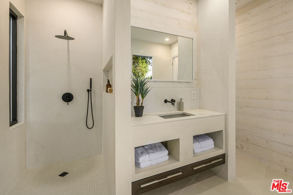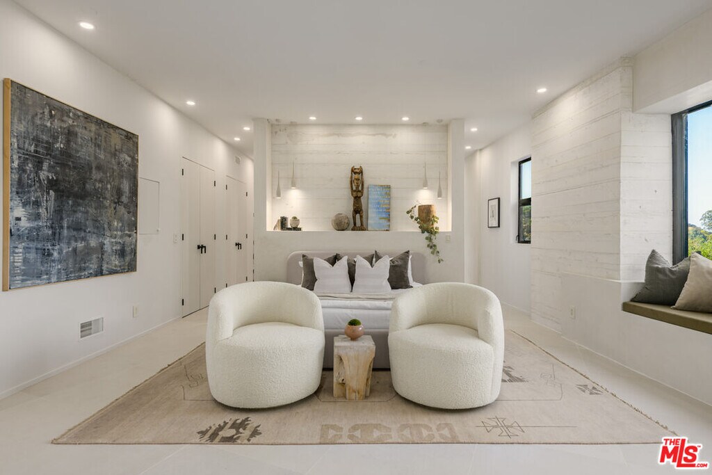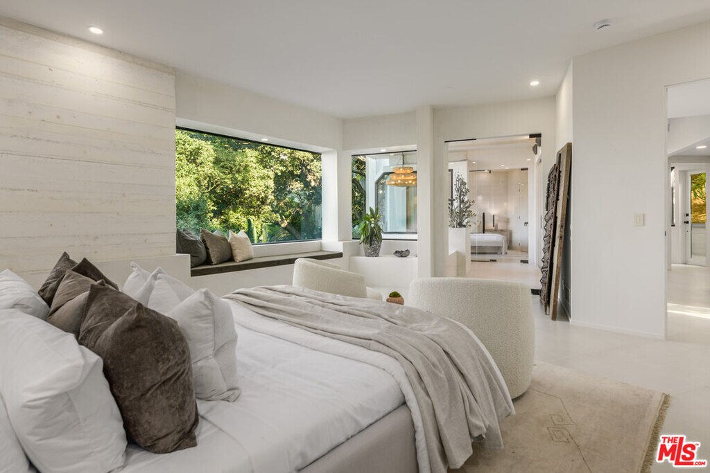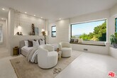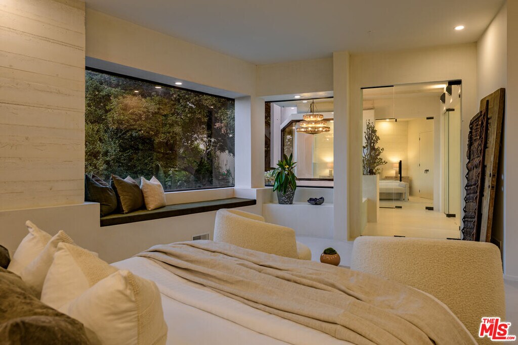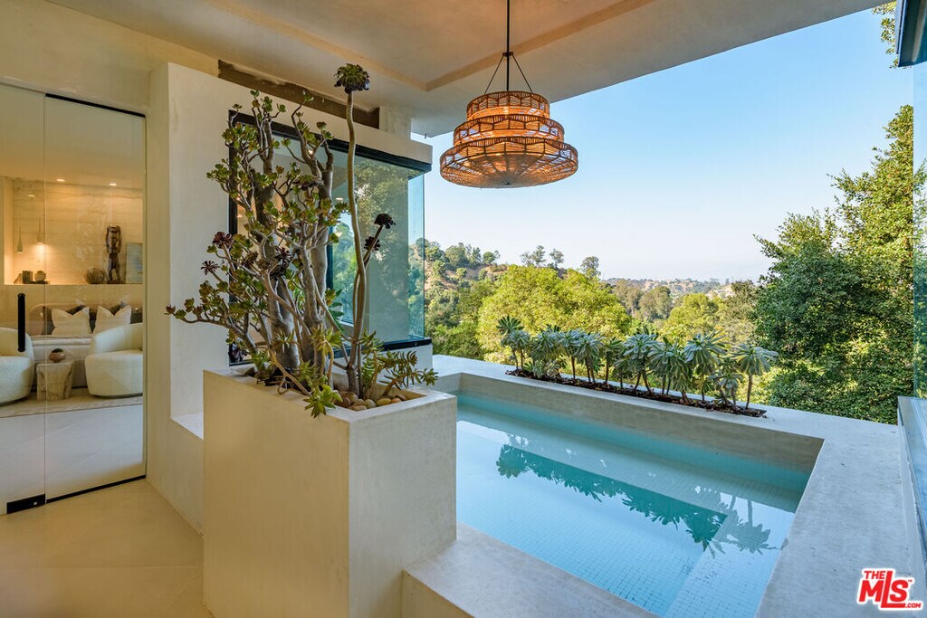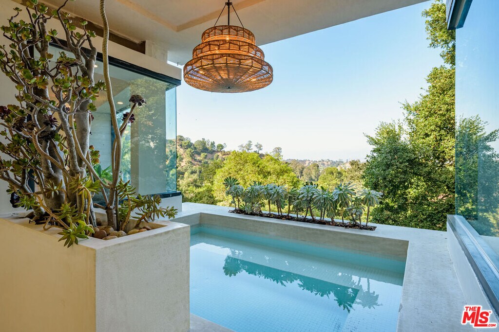 8896 Lookout Mountain Hollywood Hills. A private architectural retreat with unobstructed views of legendary Laurel Canyon. This modern residence combines striking geometric design with natural light, sculpting a home of elegance, privacy, and serenity. The open living space features white porcelain floors, smooth concrete walls, and a statement fireplace, flowing into a chef's kitchen with dark oak cabinetry, porcelain countertops, and top-tier appliances. Two primary suites include spa-inspired bathrooms with Japanese soaking tubs and a shared balcony with an infinity-edge Jacuzzi overlooking the canyon. A third bedroom opens to the deck and landscaped garden. Outdoor living is elevated with expansive decks, a rooftop lounge with panoramic views, and the potential for a leveled garden with secondary street access. Nestled in a coveted enclave of the Hollywood Hills and near acclaimed Wonderland Avenue Elementary, this home offers unmatched privacy and a lifestyle defined by design, views, and exclusivity. MLS# 25629573