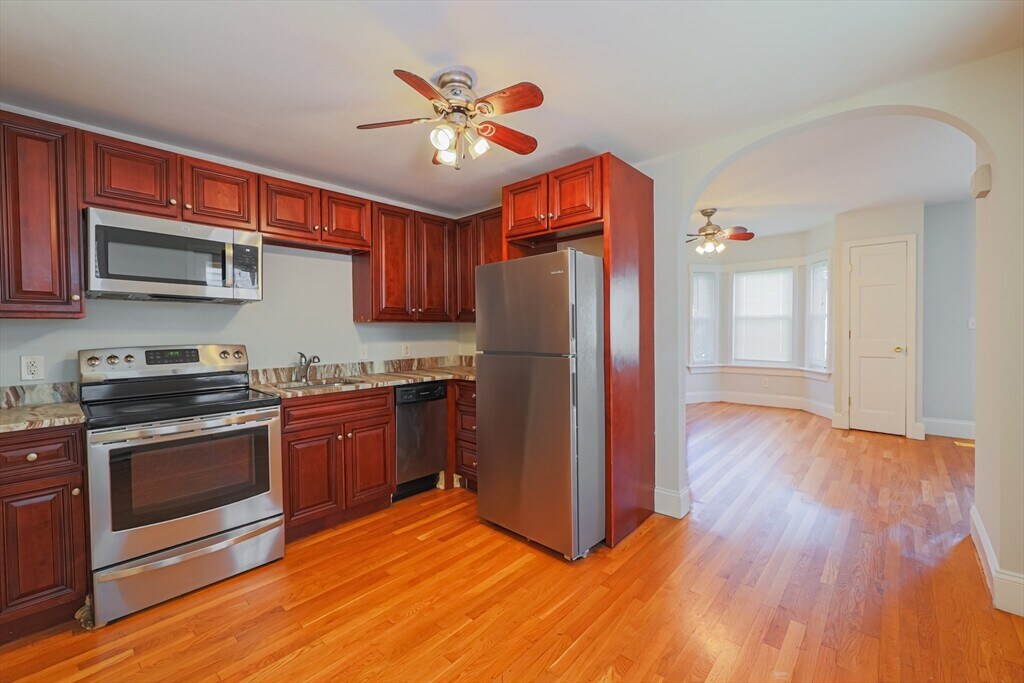 This spacious tri-level single-family home in East Boston offers four bedrooms and two full bathrooms,freshly painted and professionally cleaned throughout. The modern kitchen features stainless steel appliances,granite countertops,and electric cooking. Gleaming hardwood floors extend through the kitchen,living,and dining areas. Enjoy a large private backyard,perfect for gatherings and outdoor entertaining. Conveniently located near three Blue Line train stations—Wood Island (0.8 mi),Airport (0.7 mi),and Maverick (1.1 mi)—providing quick access to downtown Boston and Logan Airport. The property is vacant and move-in ready. Pets are welcome with approval. MLS# 73450700