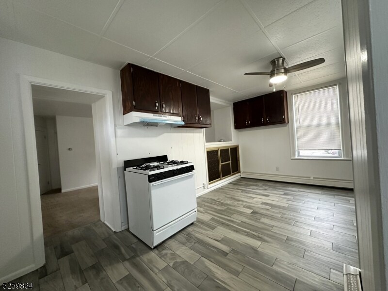 Spacious living room with new carpeting, eat in kitchen, full bath, sitting porch, 2 bedrooms, one car off street parking, close to highways, lots of retail in the area and more