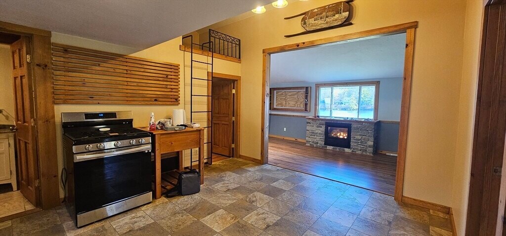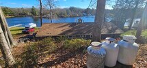 Waterfront 1 bedroom unit in a half duplex ready for immediate occupancy. This apartment is in a 2 unit building. Yard and dock space are shared. Bring your boat and enjoy the lake year round. Now is the time to get ready for snowmobiling,ice fishing or skating on the lake. Walk into the mudroom and take off your shoes. The living room offers a captivating space with its propane gas fireplace and vaulted ceiling,presenting a comfortable area to unwind. Imagine relaxing evenings spent by the fire,and overlooking the stunning views of Cranberry Meadow Lake. The 3/4 bathroom features a walk-in shower. There is also a small office with exterior exit. This home was built in 1940 however,it was gutted to the studs and redone and fully insulated. This is a ranch home,one floor,see photos for staircase from the road to the waterfront unit. MLS# 73459155