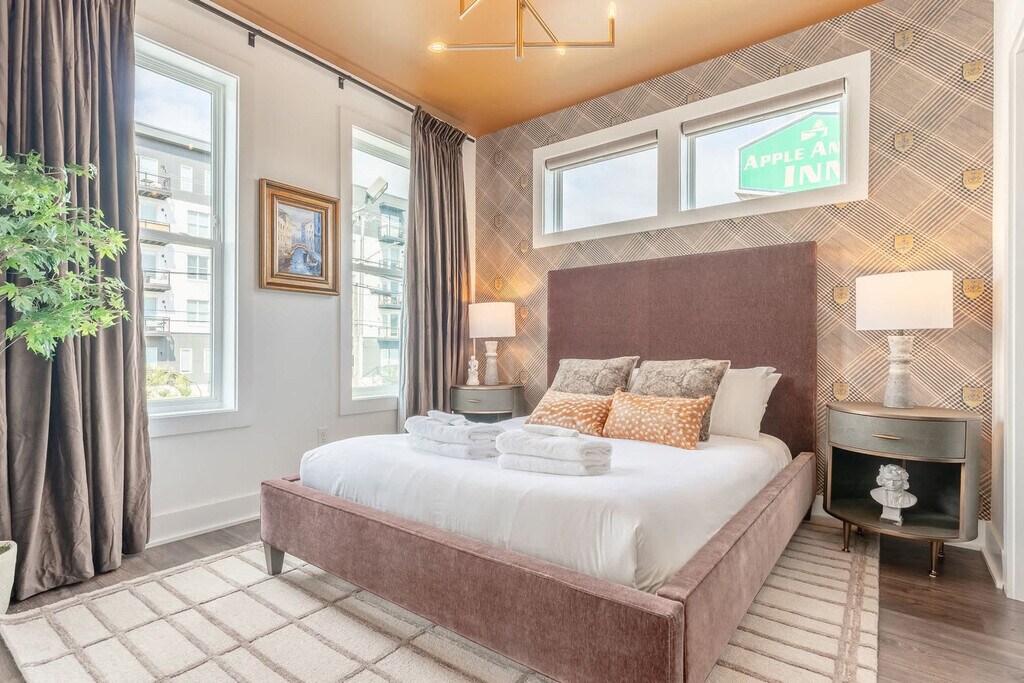 Feel at home in Neon Moon, a luxury Nashville retreat with four bedrooms, a rooftop fire pit, and skyline views, just 3 miles from Broadway. This apartment blends custom design, curated art, and a chef’s kitchen with seating for 14. It features memory foam beds, spacious living areas, a washer and dryer in unit, multiple smart TVs with Wi-Fi access, a coffee station with drip and pod options, USB charging stations at every bed, central AC and heating, premium linens and towels, and an outdoor rooftop dining and lounge space. Private garage parking with 2 spaces is available (Note: Vehicles over 19’ will not fit). Free street parking is also available. This dynamic area is a stone's throw away from downtown Nashville, bustling with energy and excitement. Explore nearby hotspots like trendy East Nashville or the historic Germantown district, where you can discover local boutiques, art galleries, and charming cafes. Indulge in Nashville's renowned culinary scene by dining at top-rated restaurants such as The Southern Steak & Oyster or Husk Nashville, both located just minutes away. With easy access to main roads and public transport, exploring Nashville's landmarks is a breeze. Smoking is not allowed inside the property or near open doors or windows. A minimum $500 fine applies for violations. Quiet hours are 10pm–8am on weekdays and 12am–8am on weekends. If the listing indicates that pets are not allowed, no pets of any kind are permitted. Any undisclosed or unauthorized pet will result in eviction, forfeiture of all rent, and a $150 penalty per pet. If the listing indicates pets are allowed, pets must be disclosed and approved in advance. A $150 pet fee applies per approved pet. Registration Number: [SI]