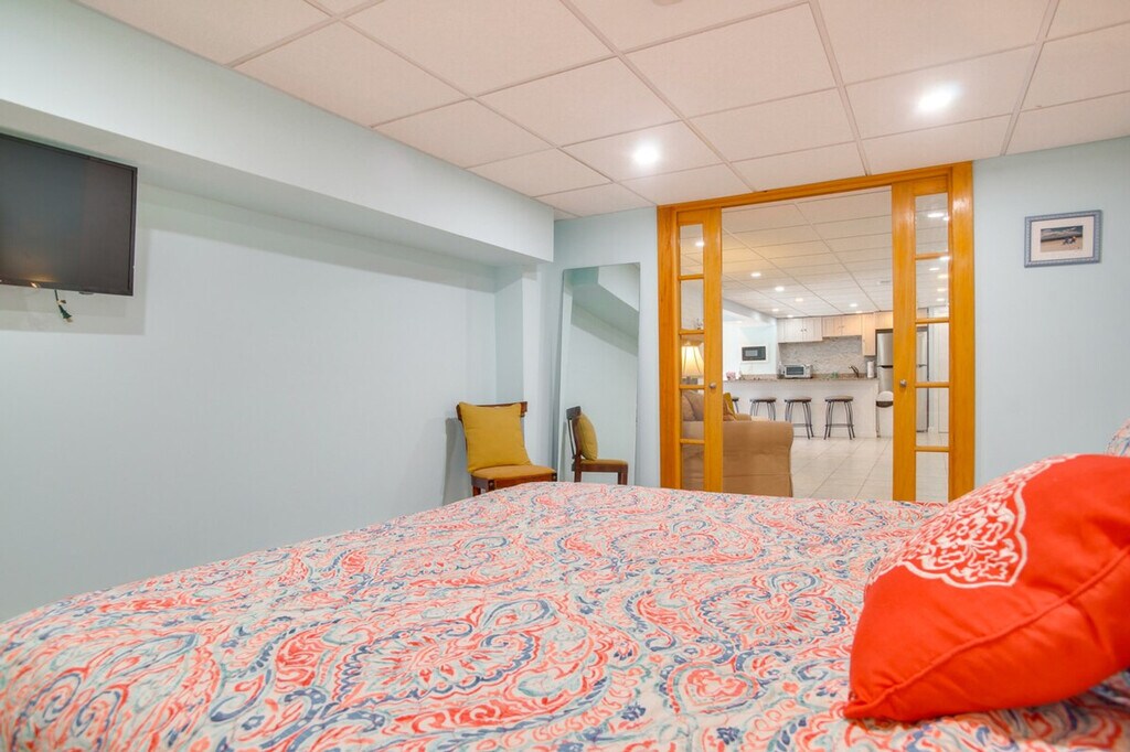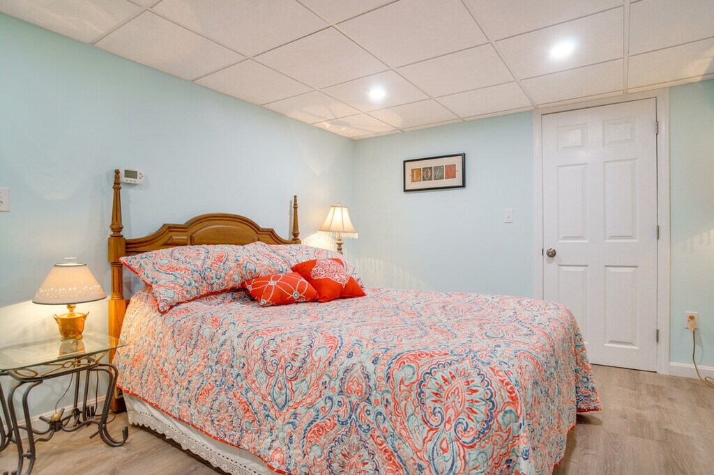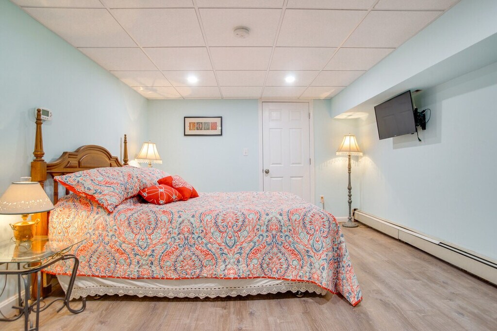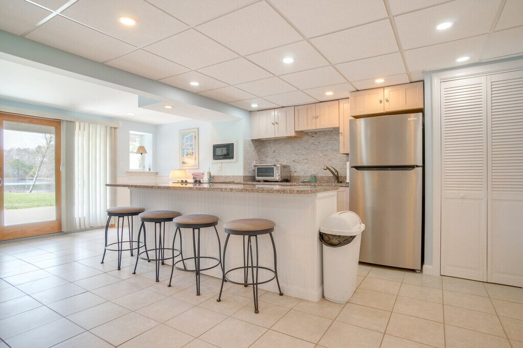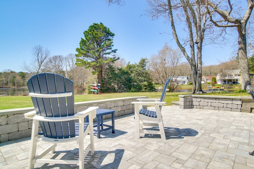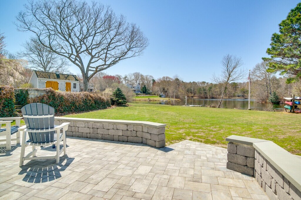 Feel at home in this charming 1-bedroom, 1-bath apartment in Mashpee, offering a picturesque waterfront setting for your next Cape Cod retreat. This single-story apartment requires using stairs to access. The apartment features a sleek interior and a furnished patio with a pond view. The kitchenette is equipped with a refrigerator, stovetop, microwave, Keurig coffee maker, toaster oven, blender, dishware and flatware, and cooking basics. You'll also find a smart TV, board games, a fireplace, bar seating, a washer and dryer, an iron/board, trash bags and paper towels, towels and linens, a hair dryer, and electric heating. Free Wi-Fi is available. Guests can enjoy shared access to single and double kayaks, a stand-up paddleboard, adult and child-sized life vests, and bicycles. Free street parking and shared driveway parking for 2 vehicles are available. Enjoy the convenience of being able to walk to the beach and being just 2 miles from Mashpee Commons. Explore trails in the Mashpee River Woodlands or spend an afternoon relaxing on the shores of South Cape Beach. Smoking, pets, events, parties, and large gatherings are not allowed. There is another bookable vacation rental upstairs, with access to shared amenities; other travelers may be present during your stay. The property does not have air conditioning. An additional 3-bedroom vacation rental for 6 guests is available upstairs. [SI]