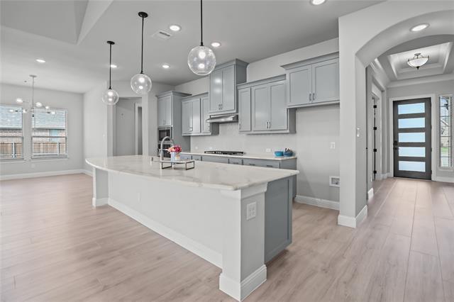 welcome to the urban sanctuary, 5 beds 4 bath north facing luxury home in the coveted city of prosper. Beautiful Kitchen with extended stone countertops complimented with stainless steel appliances. High bolted ceilings and large willows that fills the space with natural light. 4 main floor bedrooms for convenience along with the game room. Spacious office space and recently remodeled laundry room with tons of storage. Covered Patio with fireplace and gas connection to host outdoor parties. oversized lot with huge backyard. a lot of custom built-in in the garage This property is across from PGA Frisco on 380 & Tollway. Gorgeous neighborhood pool, amenity center w outdoor kitchen, trails, pond & playgrounds