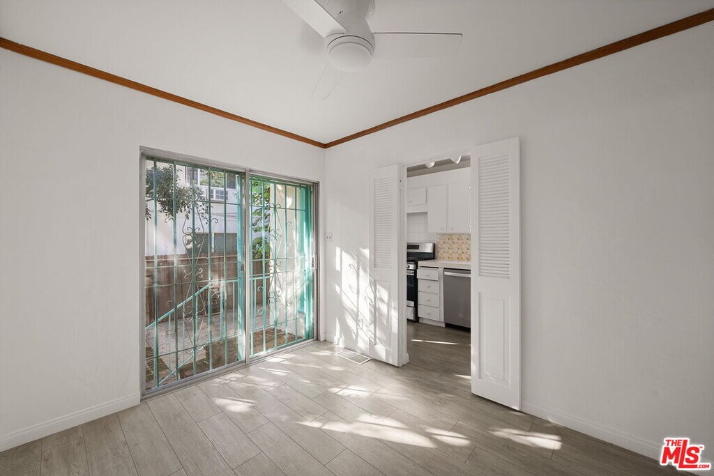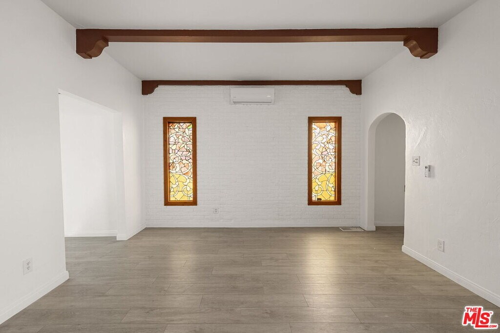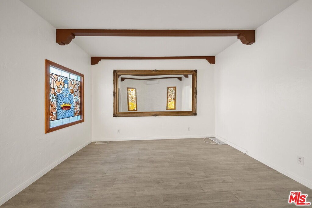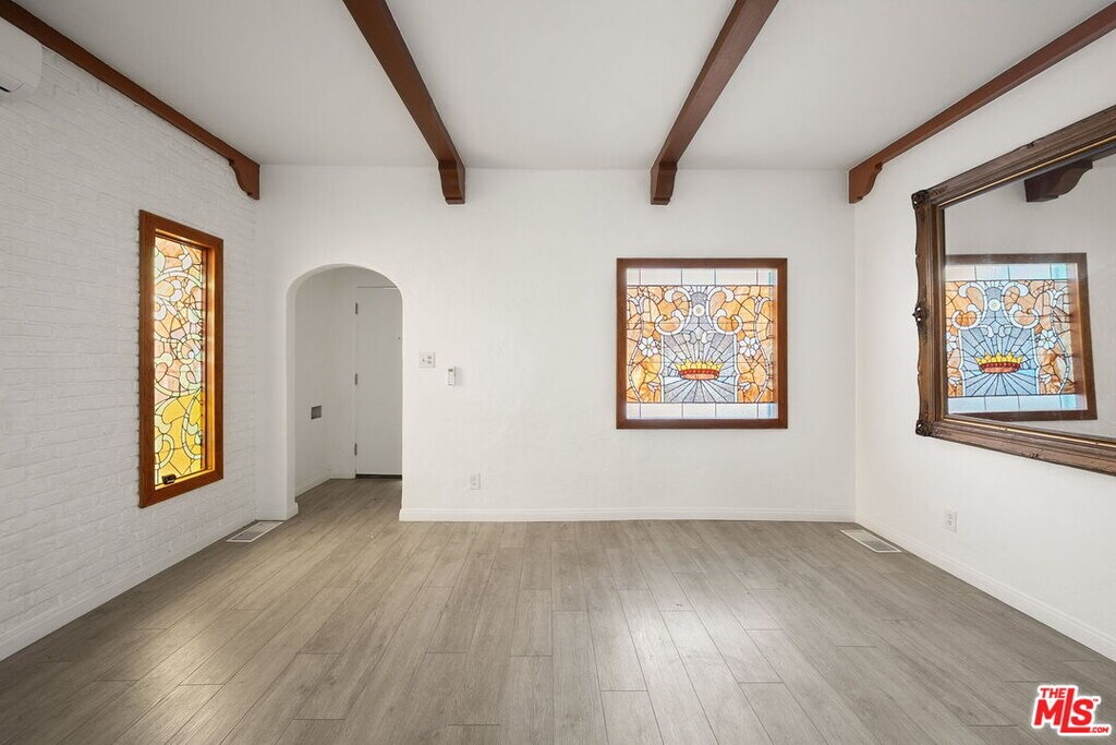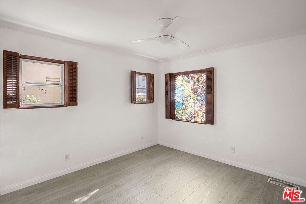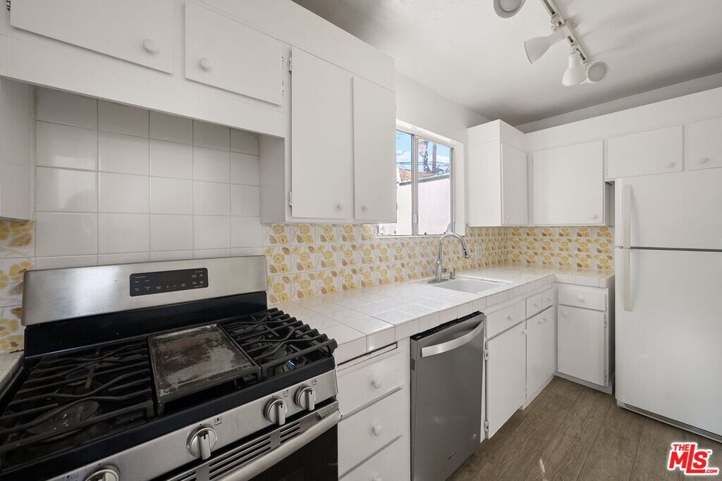 Discover this inviting 1930s home, ideally located just moments from the shops and restaurants along Robertson Boulevard. Behind a classic white picket fence, the residence blends vintage character with modern comforts, featuring exposed wood beams, a white brick accent wall, arched doorways, and rare European stained-glass windows that fill the living room with color and privacy. The kitchen is equipped with a refrigerator, stainless steel dishwasher, a 5-burner gas range and ample cabinetry. Two thoughtful appointed bedrooms complete the layout, each outfitted with generous closet space, wood shutters, and individual unique stained-glass windows. The charming bathroom features penny tile flooring and a spacious vanity sink, with a convenient linen closet nearby. Grey wood flooring runs throughout, tying the spaces together with a warm, modern feel. Outside showcases a spacious rear patio, offering an ideal setting for entertaining, relaxing or dining al fresco. Additional notable features include a one-car garage, perfect for parking or extra storage, a new roof and a solid wood front door. Set in a quiet, charming neighborhood, just around the corner from local favorites, 8900 Guthrie offers the perfect mix of comfort, character, and convenience. MLS# 25625367