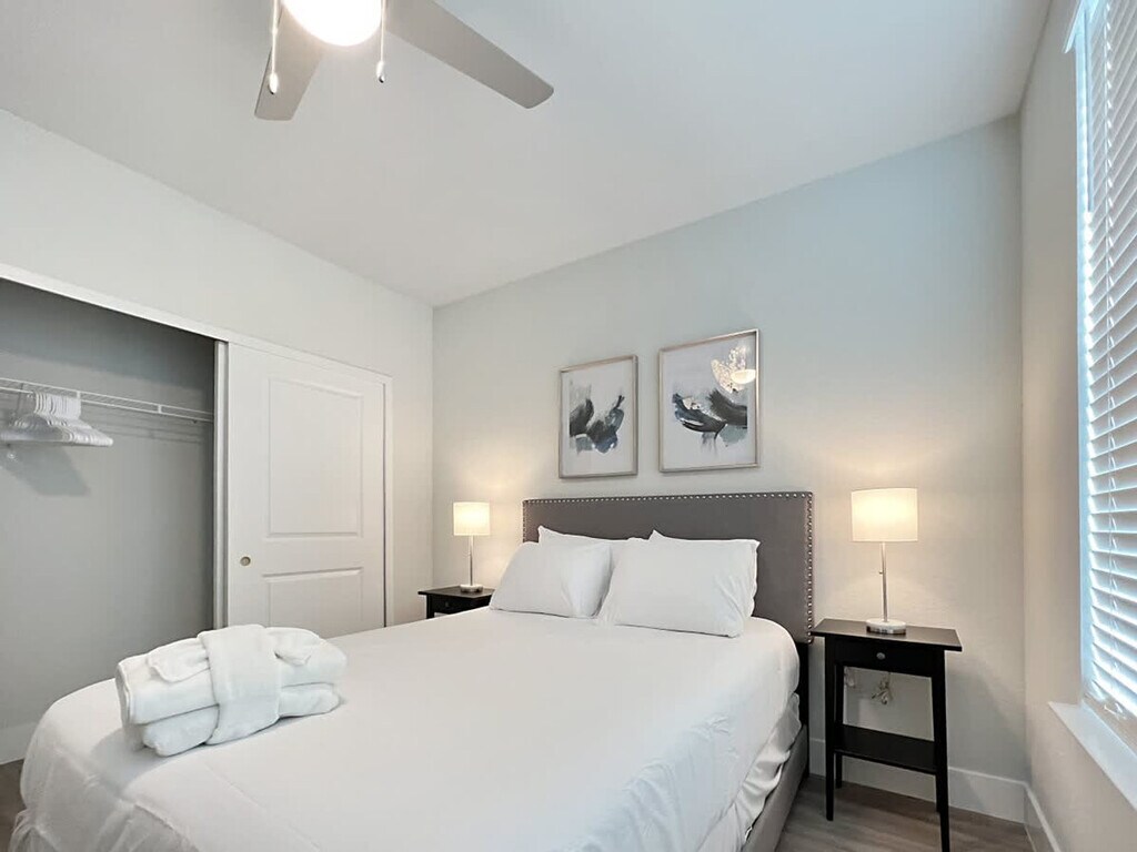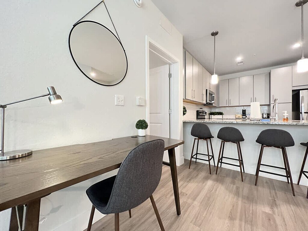 The advertised rate of $3,602/month is the lowest available price, based on a 30 day(s) stay with a move-in date of August 6, 2026. Rates vary depending on the duration of stay, season, and other parameters. For exact pricing and additional pricing components, please visit our website and enter your desired move-in and move-out dates. The rate is applicable when billed upfront; it can be higher if billed in multiple payments. Feel at home in this beautiful 2-bedroom, 2-bath apartment on the 3rd floor of a building with elevators. This fully furnished apartment features a full in-suite washer and dryer. Enjoy access to a state-of-the-art gym, a clubhouse, and other luxury amenities. Entertainment is provided with Netflix, Hulu, and cable TV (70+ channels + DVR). Permitted community parking is available for up to 2 vehicles. Cats and dogs are allowed with restrictions; restricted breeds include Pit Bull, Rottweiler, Chow Chow, German Shepherd, Siberian Husky, Alaskan Malamute, Doberman Pinscher, Presa Canario Bulldog, Great Dane, Boxer, Akita, Wolf Hybrid, or any mixed breed that includes one of the listed above. Inquire about the pet fee, as it depends on the length of stay. There is a 2 pet limit. This apartment is centrally located just minutes from Moffitt Cancer Center, Busch Gardens, and the University of South Florida. The area is surrounded by fantastic restaurants, entertainment, shopping, and some of Tampa Bay's best hospitals. The easiest way to get around is by car, but Uber and Lyft also service the area. Smoking of any kind, medicinal or otherwise (including vaping), is not allowed within the apartment or within 20 feet of the building. If it is discovered that a guest was smoking in the apartment, a $1,500 fee will be charged. Check-in is from 4:00 PM to 8:00 PM. You must be notified 24 hours in advance if you are checking in after 6 PM. Background screening is required for every adult (age 18+), and guests must complete screening forms 48 hours prior to check-in. Guests may not check-in if background screening has not been completed. Two occupants are allowed per bedroom. Maintenance follows a service route each day and cannot be scheduled (excluding tasks that exceed 2 hours to complete). Technicians will not enter the property if there is a loose dog. Pets must be put away in a crate or alternative room or bedroom. Includes a work desk and chair with lightning-fast Wi-Fi. [SI]