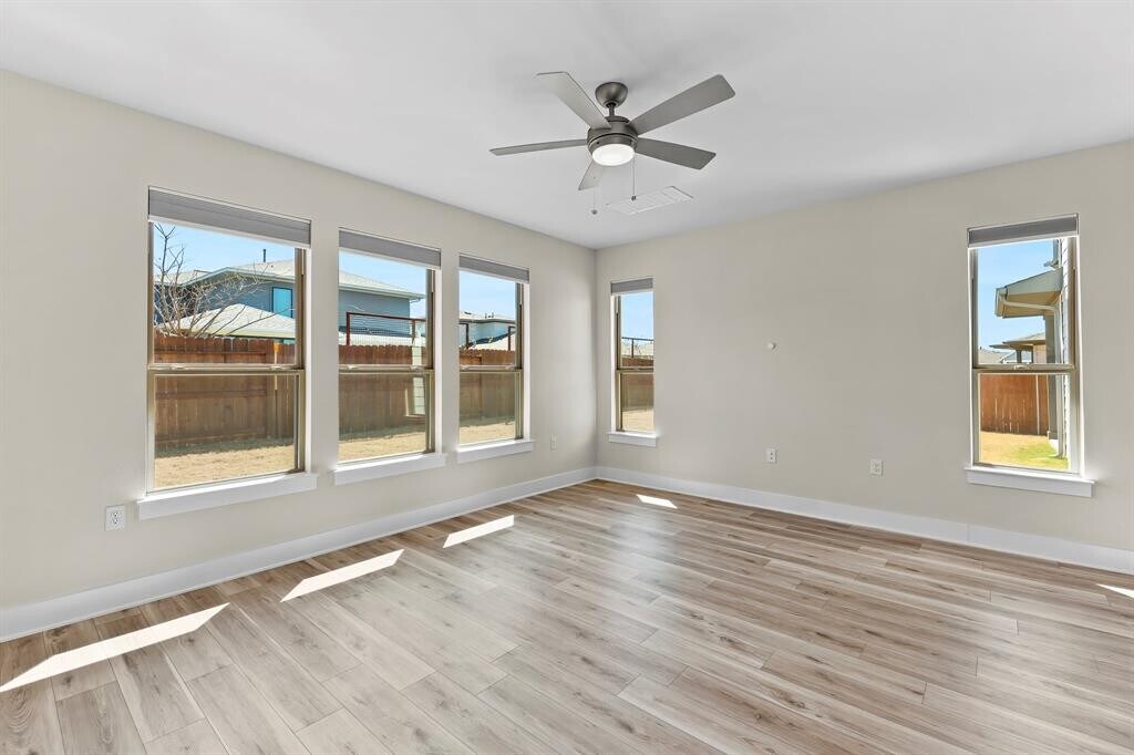 LEASE INCLUDES INCENTIVE: Landlord-provided pest control and full lawn care, including mowing, weed control, and sprinkler system programming. This spacious modern home offers upgraded features, smart technology, and plenty of square footage. The open living room features high ceilings and is filled with natural light, creating a bright and airy feel. The gourmet kitchen comes with high-end stainless steel appliances, quartz countertops and gas cooking. Recessed lighting is installed throughout, and all bathrooms include black/UV light and time-programmable exhaust fans. The home also includes high-quality cellular blinds in the main living areas, with blackout cellular blinds in the bedrooms. A 3-car garage (2 tandem) provides ample storage, plus additional driveway parking. Smart home features include a Google Nest doorbell, Simply Safe alarm system, garage WiFi, and a smart door lock. Additional features include a first-floor flex space, recessed lighting in all rooms, laundry has an exhaust fan, all bathrooms have a black/UV light and time programmable exhaust fan, and high energy efficiency cellular blinds throughout the home. This rental includes: Washer, Dryer, and Refrigerator. Amazing Community Features: Over 13 miles of picturesque walking trails, Parks and playgrounds suitable for all ages, Resort-style pools and a spacious fitness center, Relaxed hangout area with billiards, gaming, and more, Conference rooms, a yoga lawn, and a coffee bar. Prime Location: Approximately 15 minutes to Austin Airport, Downtown Austin, TESLA, and Circuit of the Americas, and around 7 minutes to McKinney Falls State Park. MLS ID 2145445