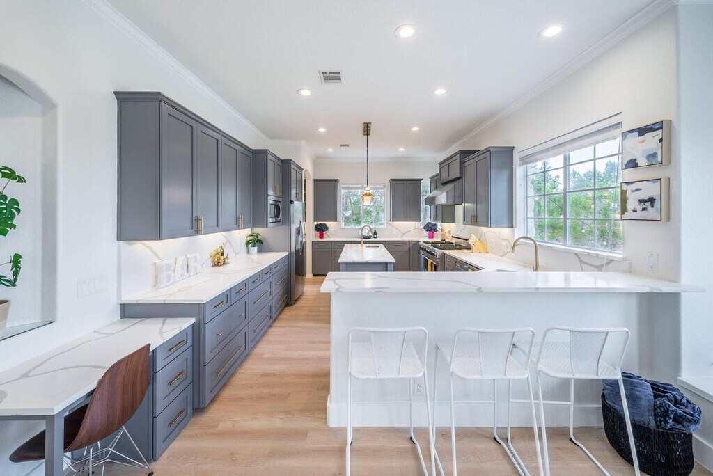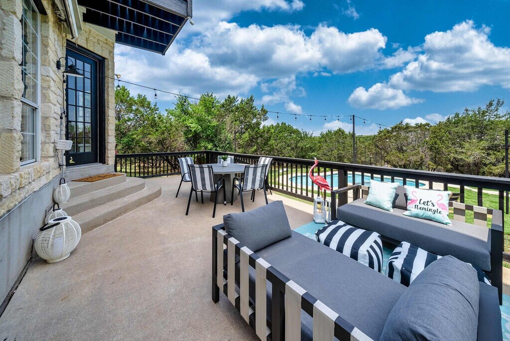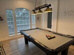 Feel at home in this luxurious 6-bedroom, 4-bathroom home in a peaceful Austin neighborhood, comfortably accommodating up to 22 guests. Nestled on two private acres, this spacious home blends modern comfort with a touch of Texas elegance and is conveniently located near several popular wedding venues and just 20 minutes from downtown Austin. This home features multiple living areas designed for both relaxation and entertainment. The fully equipped chef’s kitchen includes a commercial-grade Viking stove and oven, a large refrigerator, ample cabinetry and cooking space, a mini bar area, and a coffee maker (Keurig and drip). Enjoy the 65” Smart TV and indoor fireplace in the living room, along with a pool and ping pong table. The expansive backyard features a heated private pool, hot tub, fire pit, corn hole, outdoor patio/dining, BBQ grill, beach essentials (chairs, towels and toys), string lights, and bocce ball. The heated private pool is available for $125 per night and is recommended between October and May. At least a 3-day notice is required before your arrival if you'd like the pool heated, and the pool must be heated for the entirety of your stay. Up to 2 dogs are allowed for $125 per stay. Nearby attractions include McKinney Falls State Park (~8-9 miles away), Zilker Metropolitan Park (~10-12 miles away), South Congress Avenue (“SoCo” district) (~9-11 miles away), the Texas State Capitol (~11-13 miles away), and Barton Creek Greenbelt (~7-10 miles away). For dining, visit Jack Allen’s Kitchen – Oak Hill (~2-3 miles away), Odd Duck (~9-10 miles away), The Oasis on Lake Travis (~15-18 miles away), Sawyer & Co. (~9-10 miles away), or Corner Restaurant Austin (~10-11 miles away). No parties are allowed, and violations may result in immediate termination of the stay. Exterior cameras are installed solely to monitor the cleaning team for quality and security purposes. Parking is available for 4 vehicles in the driveway and 2 spots on the street. Guests must be 21 years or older to book this property. Check-in is at 4pm and check-out is at 10am. We kindly ask that your dog is crate trained and that you pick up after your dog. Please do not park in front of neighboring homes, as we want to be respectful and courteous to our neighbors and their landscaping. [SI]