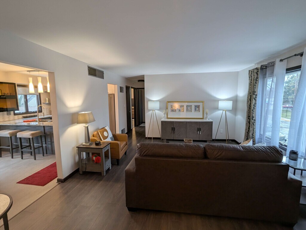 Professional personalized fully furnished space for 2. Includes everything needed to keep your focus while in a new area. Attached private garage + separate driveway parking, Cambria and Gloss kitchen, Shower Tower bath, Serta Cool beds, and laundry.100% refresh to this upper unit Duplex, including dramatic contemporary solid surface kitchen with all new appliances and barstool seating plus dining table and butler pantry. Leather sofa, chair, 65in Samsung, elevating worktop coffee table, and laptop desk workstation area. Main bath with tub/shower tower waterfall second bedroom with half bath & laundry. Bedrooms have new gel top mattresses, large closets and wall mount TV in Main. Amazing 2 bedroom, 1.5 bathroom house in Highland. Amenities included: central air, central heat, dishwasher, stainless steel appliance, updated kitchen, updated bathroom, storage, and washer dryer. Utilities included: electricity, heat, gas, internet, air conditioning and water. Is not pet friendly. Date Available: Jan 19th 2026. $2,950/month rent. $1,500 security deposit required. Please submit the form on this page or contact Robert Duddy at to learn more.