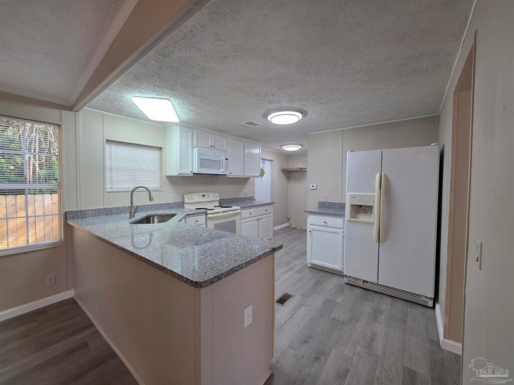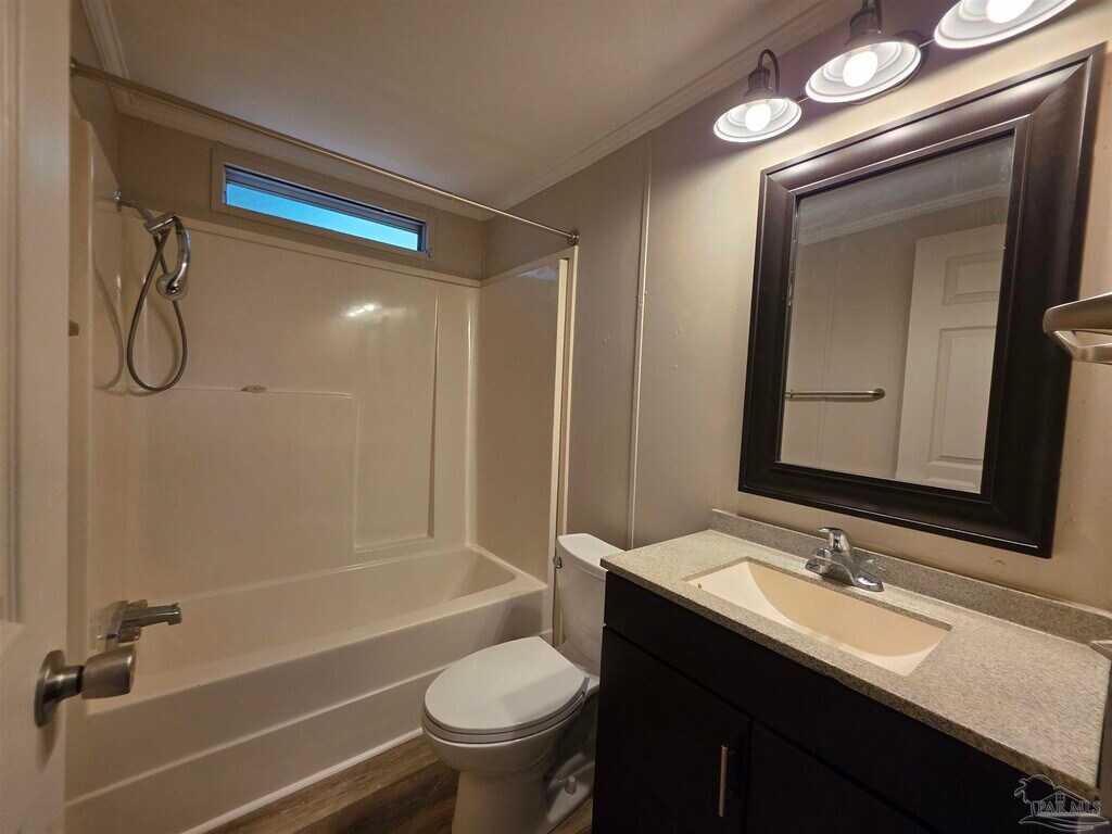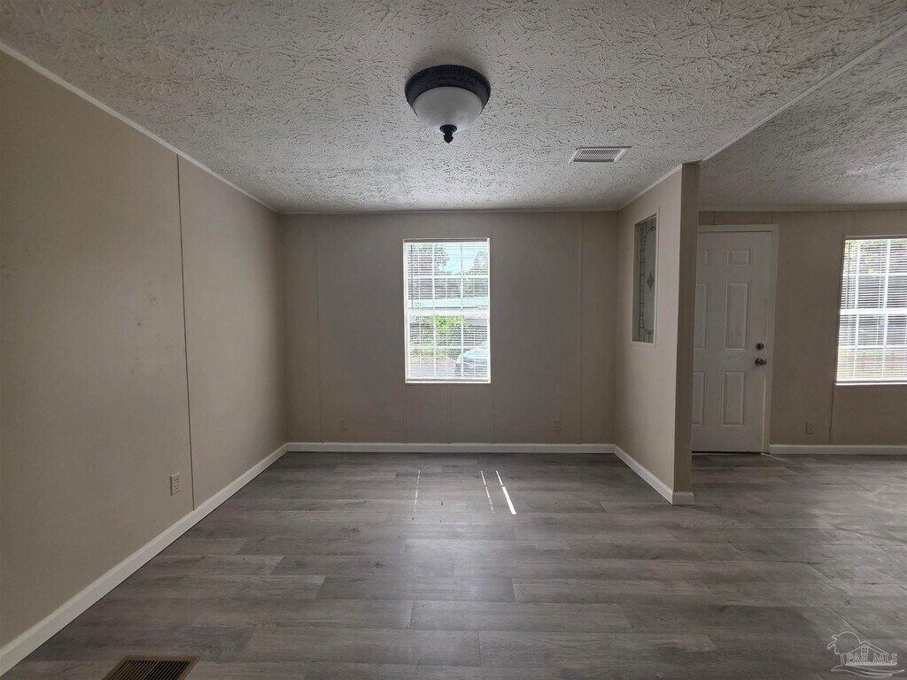 Welcome to this charming 3BR/2BA mobile home located in Pensacola. This home boasts a spacious layout with a split bedroom floor plan,offering privacy and comfort. The master bedroom includes an oversized closet and an en-suite bathroom with a double vanity,garden tub,and separate shower. The large kitchen is features granite countertops and a breakfast bar,while a separate dining room is perfect for formal meals. The living room,complete with a cozy fireplace,is perfect for relaxing or entertaining. Additional features include an indoor laundry room,central heat and air,and ceiling fans for added comfort. The flooring is LVP throughout,adding a touch of elegance. Outside,you'll find a covered back deck and a large storage shed for extra storage. Small pets will be considered upon owner approval with a $325 non-refundable pet fee per pet (limit 2). No smokers,please. Roommates,if accepted,must qualify individually.